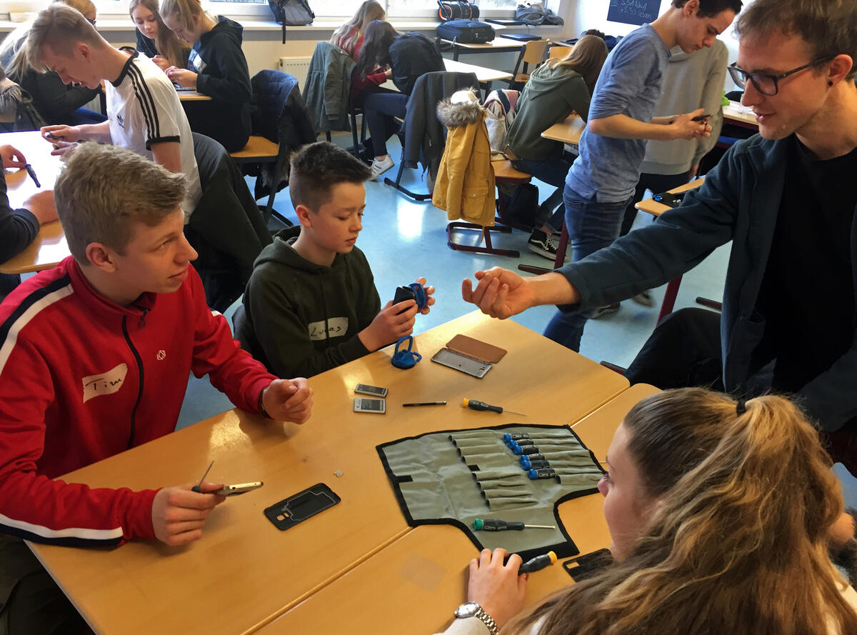 Dutz: „Reparieren ist für die meisten jungen Leute gar keine Option mehr und das wollen wir wieder ändern.“ Die Gelegenheit sei günstig, da „selber reparieren“ aktuell ein Trend sei, der dafür genutzt werden solle, um das nötige Wissen systematisch in die Schulen zu bringen. Dazu wurden in einem zweiten Projektschritt die erarbeiteten Konzepte und Materialien an sieben andere Universitäten in verschiedenen Bundesländern weitergegeben und dort in die entsprechenden Studiengänge aufgenommen. Zuletzt wurden Betriebe und Organisationen in das Projekt eingebunden. So entstand die Möglichkeit, dass die Schüler der Fächer Technik und Informatik bei Betriebsbesichtigungen Reparatur und Recycling auch aus beruflicher Perspektive kennenlernen konnten. „Wir freuen uns, dass Reparieren an vielen Schulen fester Bestandteil des Unterrichts wird“, sagt Dutz.