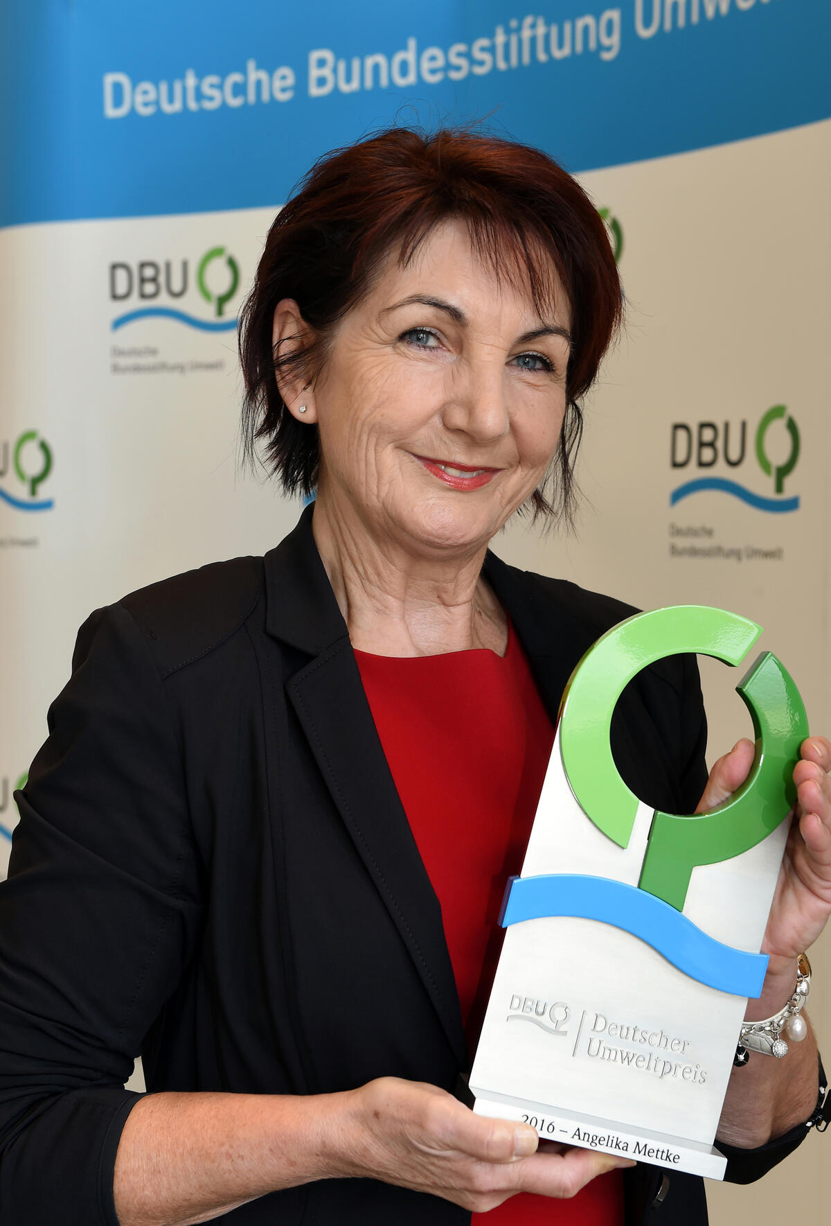 Auch „seine“ Stiftung kann ein klein wenig stolz sein, ist vor allem aber „Schuld“ an dem Würzburger „Beton-Deal“. Nicht nur, weil sie in ihrem eigenen Verwaltungsgebäude schon Ende des vorigen Jahrtausends Recycling-Beton in tragenden Wänden erstmals in einem Verwaltungsgebäude einsetzte – nach reichlich Kämpfen und am Ende einer Sondergenehmigung des zuständigen Ministeriums in Niedersachsen als oberster Bauaufsichtsbehörde. Denn als die DBU in Würzburg 2016 ihren Deutschen Umweltpreis verlieh – mit 500.000 Euro höchstdotierter Umweltpreis Europas –, stand neben dem damaligen Bundespräsidenten Joachim Gauck eine Frau auf der Bühne und nahm den Preis in Empfang: Angelika Mettke.