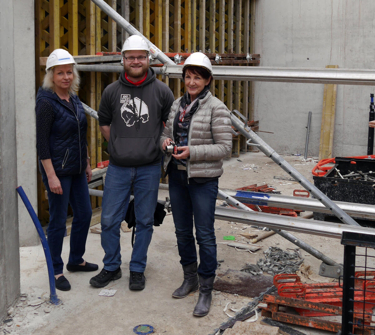 An ihrer Seite damals ein zweiter „Beton-Pionier“: Dr. Walter Feeß. Der Unternehmer und gelernte Bautechniker aus Kirchheim unter Teck hatte bereits früh den Grundstein für ein innovatives Verfahren gelegt, bei dem Altbeton geschreddert und zu kleinteiligem Material – der sogenannten recyklierten Gesteinskörnung – verarbeitet wird. Sie wird im Austausch gegen neu abgebauten Kies oder anderes mineralisches Material anteilig in Frischbeton eingearbeitet. So kam die Idee, Recycling-Beton für ein kommunales Gebäude zu nutzen, in das Bewusstsein der Würzburger Stadtmütter und -väter. Und dass diese Idee dann schließlich auch noch mit weiteren Ansätzen zum klima- und ressourcenschonenden Bauen umgesetzt werden konnte, geht auch mit auf die DBU zurück, die der Stadt Würzburg den Mehraufwand für diese Arbeiten mit rund 336.000 Euro finanziell abfederte.