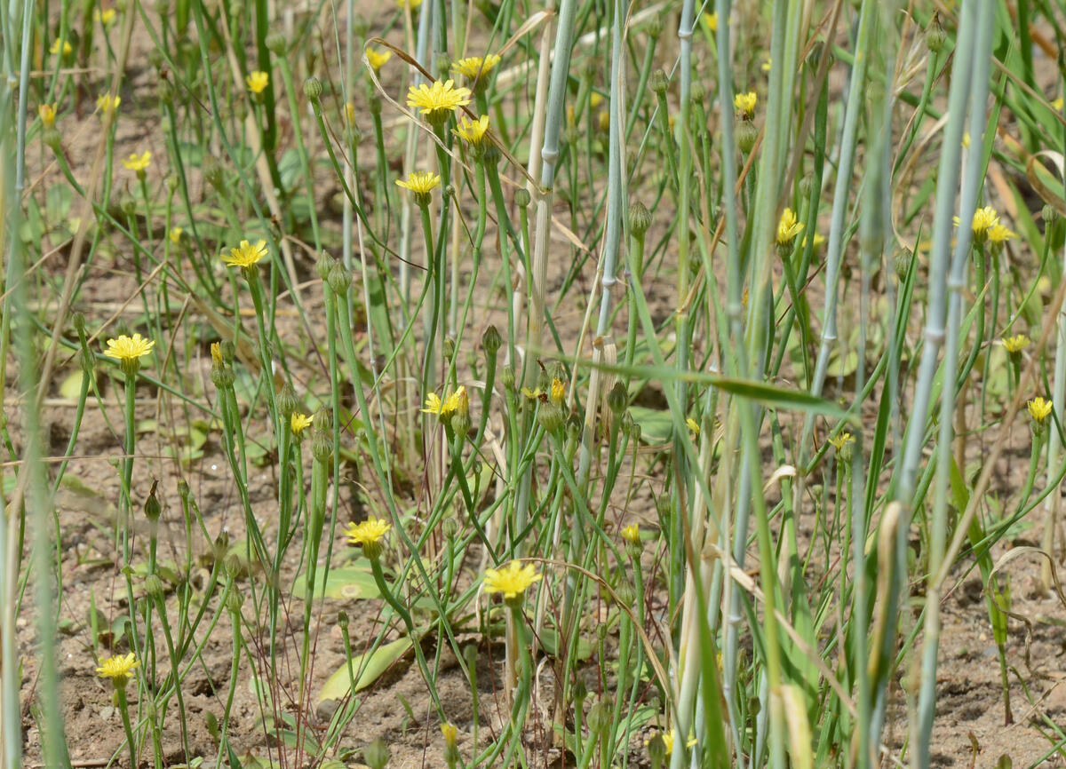 Friedrichshütte. Das Wildkraut, das seinen Namen der kulinarischen Vorliebe junger Lämmer für diese Pflanze verdankt, wurde auf einer knapp drei Hektar großen Ackerbrache der DBU-Naturerbefläche Authausener Wald nachgewiesen. Im Rahmen einer Untersuchung fand das Sächsische Landesamt für Umwelt, Landwirtschaft und Geologie (LfULG) nun knapp 100 Lämmersalatpflanzen auf dem ehemaligen Truppenübungsplatz. „Der Lämmersalat ist stark gefährdet und eine große Rarität“, erklärt Sabrina Jerrentrup, Offenlandmanagerin des DBU Naturerbes, einer gemeinnützigen Tochtergesellschaft der Deutschen Bundesstiftung Umwelt (DBU). Wo die gelbblühende Pflanze früher auf von Schafen beweideten, brachliegenden Feldern typisch gewesen sei, seien die farbigen Blüten auf den heute zumeist eintönigen Getreidefeldern kaum mehr zu sehen: „Trotz der passenden Standortbedingungen ist die zierliche Pflanzenart aufgrund veränderter Landnutzung deutschlandweit nur noch selten zu finden.“