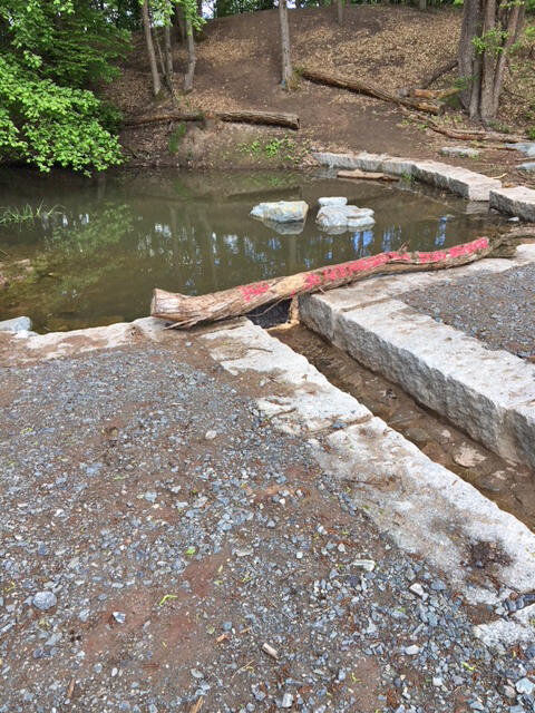 Trotz Zulauf aus dem Asbach, verliere der Weiher nach und nach Wasser. Falls nach dem Trockenlegen offensichtliche Leckstellen am Weihergrund zu erkennen sind, werden diese mit Steinen und lehmigem Material abgedichtet. Doch Dr. Uwe Fuellhaas, Experte für Gewässer- und Feuchtgebietslebensräume im DBU Naturerbe, geht von einem Problem der allgemeinen Bodenbeschaffenheit aus: „Sollte sich herausstellen, dass der gesamte Weihergrund durch die Entschlammung seine ursprüngliche Dichtigkeit verloren hat, müssen wir die natürlichen Kräfte der Selbstabdichtung abwarten. In diesem Fall würden wir wieder Wasser einlassen. Beim Versickern des Wassers lagern sich feine wasserundurchlässige Partikel am Weiherboden ab und dichten diesen dadurch allmählich wieder ab." Christian Stoewer, DBU-Koordinator beim Bundesforstbetrieb Reußenberg, verdeutlicht: „Da ein solcher Prozess nicht von heute auf morgen abgeschlossen sein kann, müssen alle Beteiligten Geduld haben.“ Bis dahin informiert ein Hinweisschild am Zulauf des Weihers interessierte Besucher über die Maßnahme und mahnt, die Konstruktion nicht zu beschädigen, um unnötige Verzögerungen zu vermeiden.