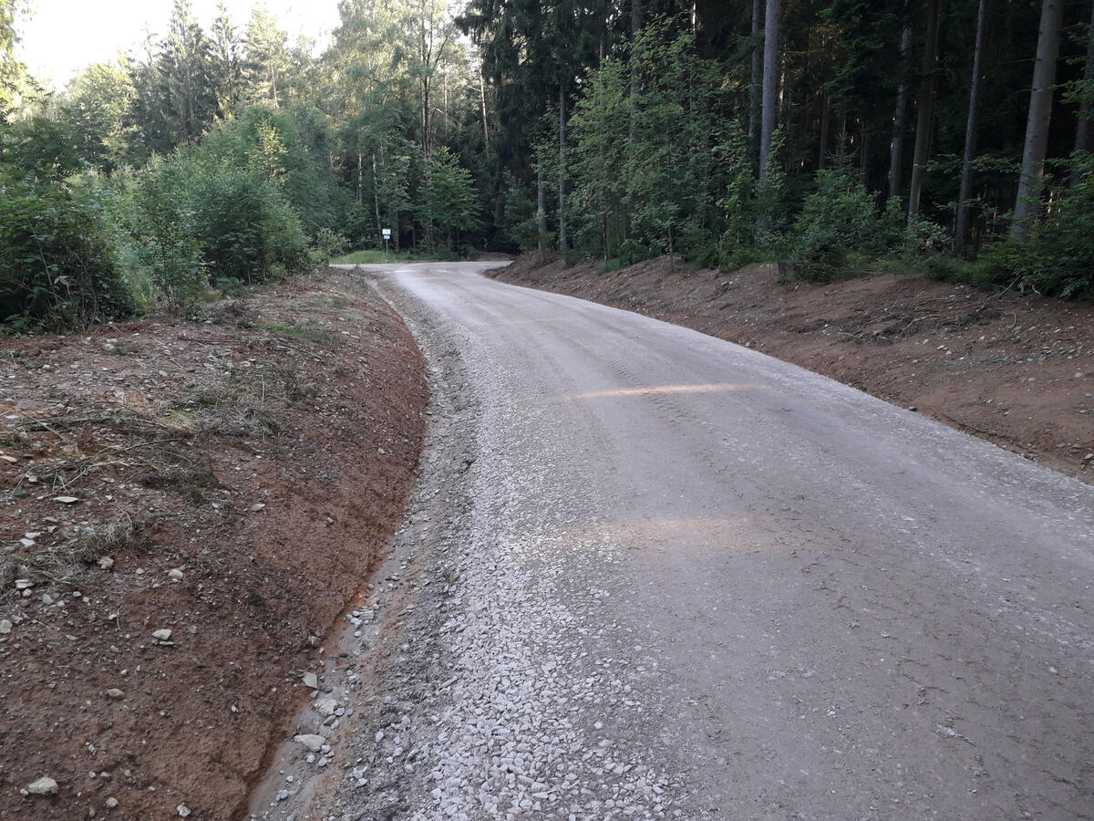 Hartmannsdorf. Es ist keine vier Wochen her, dass Gemeinde und Flächeneigentümerin bekannt gegeben hatten, die Zuwegung zum Pferdehof von Stephan Weiser inmitten der DBU-Naturerbefläche Hartmannsdorfer Forst zu sanieren und sich die Kosten zu teilen. Inzwischen sind das Profil der Fahrbahn erneuert, Gräben zur Entwässerung der Wege ausgehoben und abgesackte Wegeränder saniert. „Wir freuen uns, dass mithilfe des Bundesforstbetriebes Thüringen-Erzgebirge die notwendigen Arbeiten so schnell umgesetzt werden konnten“, erklärte Alexander Bonde, Geschäftsführer des gemeinnützigen Tochterunternehmens der Deutschen Bundesstiftung Umwelt (DBU), des DBU Naturerbes. In einem feierlichen Akt durchschnitt Bürgermeisterin Kerstin Nicolaus heute (Mittwoch) im Beisein unter anderem von Weiser und Bundesforstrevierleiter Moritz Räbel ein Band und gab die sanierte Strecke wieder der Öffentlichkeit frei.