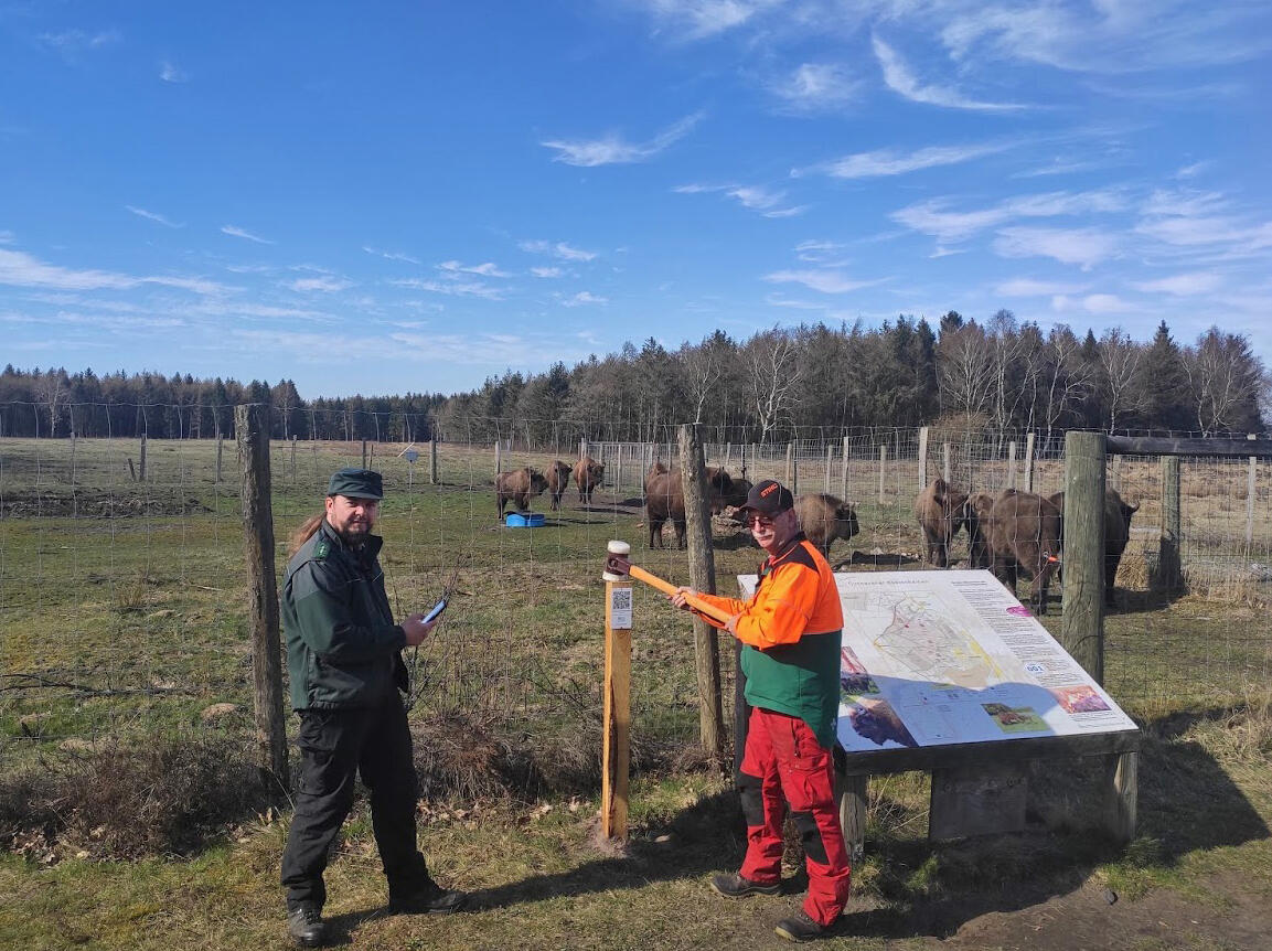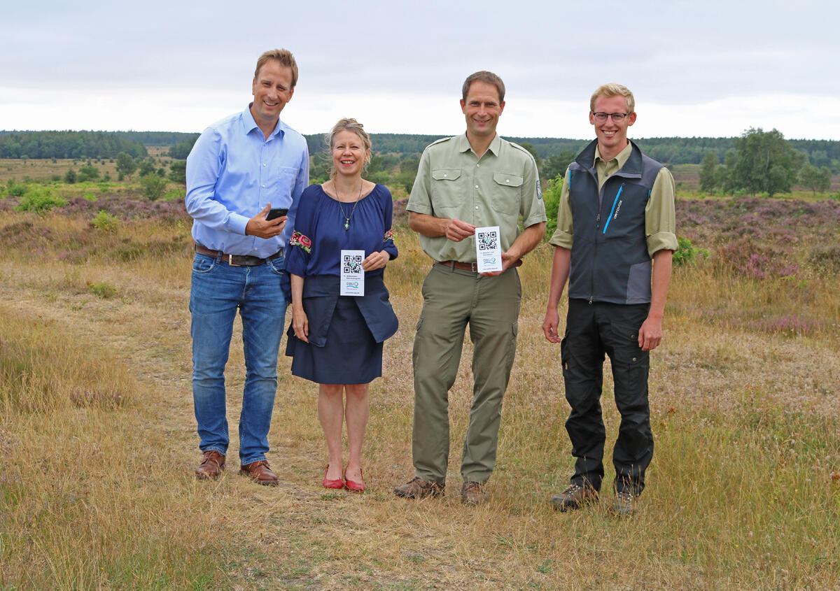 Teilweise ist die mobile Internetabdeckung in der Natur noch sehr schwach, um größere Datenpakete herunterzuladen, erläutert Kopka. Eine neue Technologie der Naturerbe-App ermögliche es nun, nicht mehr zwingend alle Informationen der App vor dem Besuch der Fläche herunterladen zu müssen. Jeder einzelne Punkt samt Inhalt könne nun mit einem einfachen „QR-Scanner“ vor Ort aufgerufen werden. „Dafür haben wir entlang der Routen 23 Schilder mit QR-Codes aufgestellt, mit denen die Informationen und Audiosequenzen am Handy punktgenau abgerufen werden können“, sagt Revierleiter Dominik Sucker vom Bundesforstbetrieb Niedersachsen. Er leitet das Forstrevier Altenwalde seit Februar 2020 und ist Ansprechpartner für die DBU-Naturerbefläche. Mit dem Smartphone wird der quadratische Mustercode gescannt und so die nächste Sprachdatei geöffnet. „Die Schilder geben inhaltliche Orientierung, stellen aber auch sicher, dass alle auf dem richtigen Weg bleiben“, ergänzt Sucker. Darüber hinaus können durch zusätzliche QR-Codes Besucher über geplante Maßnahmen, wie Wegesperrungen oder anstehende Rückbaumaßnahmen informiert werden, die einen zukünftigen Besuch betreffen.