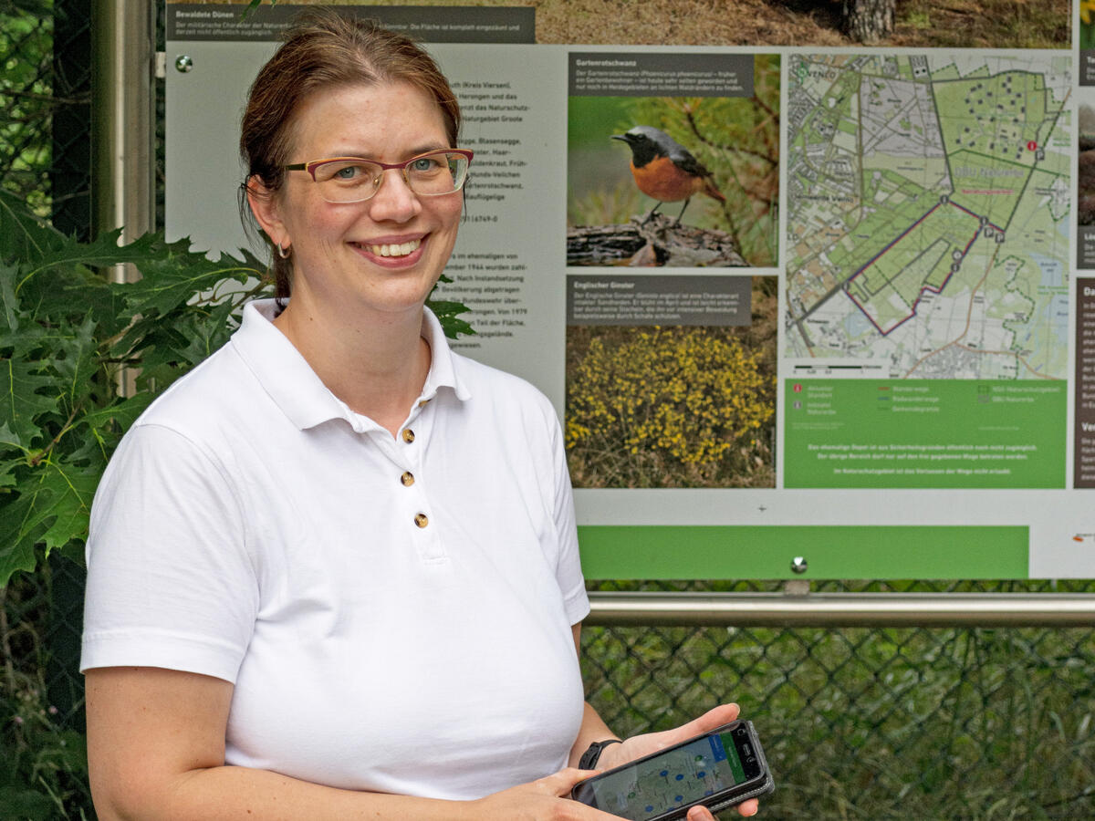 Viele der heutigen DBU-Naturerbeflächen, die zum Nationalen Naturerbe gehören und dem Naturschutz gewidmet sind, nutzte das Militär ehemals als Übungsplatz. Aufgrund der Munitionsbelastung seien viele Flächen nur entlang freigegebener Wege für die Bevölkerung begehbar. „Die Naturerbe-App ermöglicht eine gezielte Suche nach Rad-, Reit- und Wanderstrecken. Für die Ausflugsplanung ist die Länge der Rundtouren angegeben und Fotos geben vorab Einblicke in die Landschaft“, erklärt Nicole Laufenstein. Die Diplom-Biologin hat die mobile Anwendung inhaltlich maßgeblich weiterentwickelt. Neben Infos zu heimischen Tier- und Pflanzenarten und dem geografischen Raum gebe sie Hinweise, wenn sich Besucher interessanten Standorten im Gelände nähern. Dazu gehören etwa Aussichtspunkte, Infoschilder oder Naturdenkmäler. Auch Parkplätze, Haltestellen und Gastronomie sind verzeichnet.