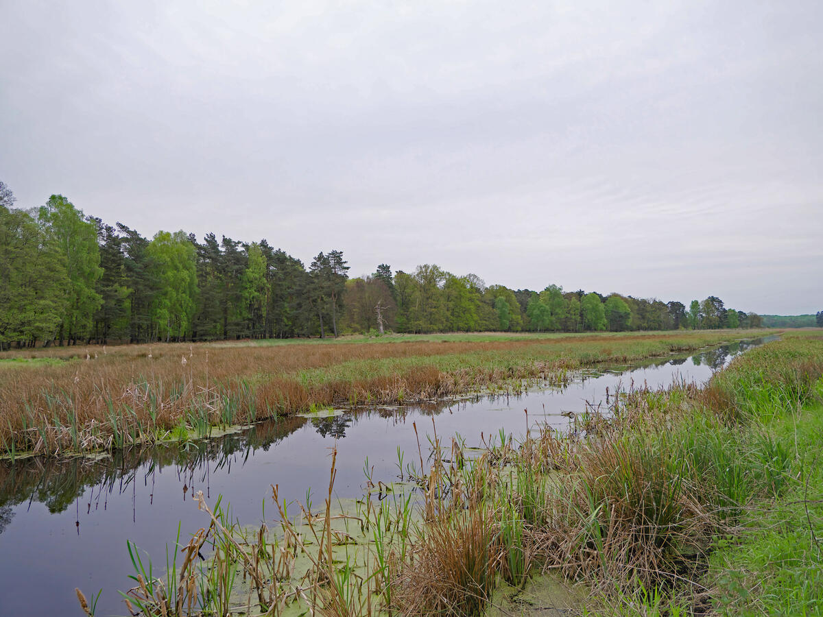 Auch auf Offenlandflächen habe der Wassermangel teils gravierende Folgen. „Vor allem in unseren Mooren, aber auch in landwirtschaftlich genutzten Flächen wird es zukünftig immer wichtiger, das Wasser in der Landschaft zu halten“, betonte Belting. Die Torfkörper könnten sich nur erholen, wenn das von Menschen gezogene Grabensystem den Mooren nicht weiter ganzjährig das Wasser entziehe. Was für die Land- und Forstwirtschaft nützlich war, führt dazu, dass die Moorböden mit Sauerstoff in Verbindung kommen, mineralisieren und Treibhausgase wie Kohlenstoffdioxid freisetzen. Um diesen Weg umzukehren, würden im DBU Naturerbe beispielsweise Gräben verschlossen oder mit Stauen versehen. Auf der DBU-Fläche Ueckermünder Heide (Mecklenburg-Vorpommern) habe die Stiftungstochter mit weiteren Partnern über viele Jahre das sogenannte Martensche Bruch wiedervernässt und inzwischen die Stauziele erreicht. „Natürlich hat das Moor auch unter der Trockenheit gelitten – aber der Gesamtzustand hat sich insgesamt deutlich verbessert“, freute sich Belting.