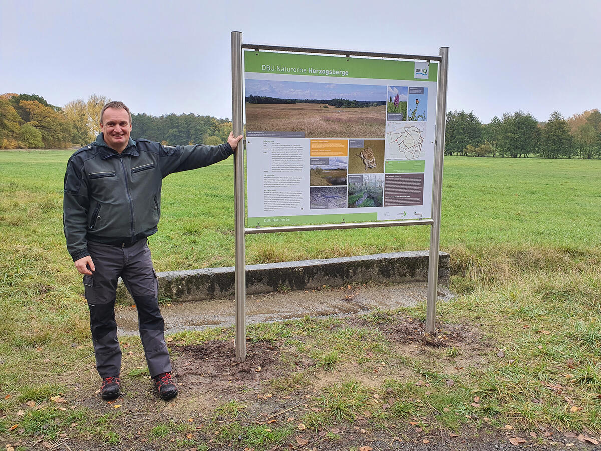 Im Auftrag der gemeinnützigen Tochtergesellschaft der Deutschen Bundesstiftung Umwelt (DBU), dem DBU Naturerbe, betreut Revierleiter Achim Hördler vom Bundesforstbetrieb Niedersachsen die rund 130 Hektar große Fläche vor Ort. Der Revierförster freut sich über die kürzlich aufgestellten Schilder: „Auf einer Karte auf den Tafeln finden Besucher ihren Standort im Gelände des Schutzgebietes, sehen wo freigegebene Wege verlaufen, oder wo es zum Aussichtspunkt geht“. Sie erfahren Wissenswertes zum Nationalen Naturerbe und über die unterschiedlichen Lebensräume des ehemaligen Standortübungsplatzes.