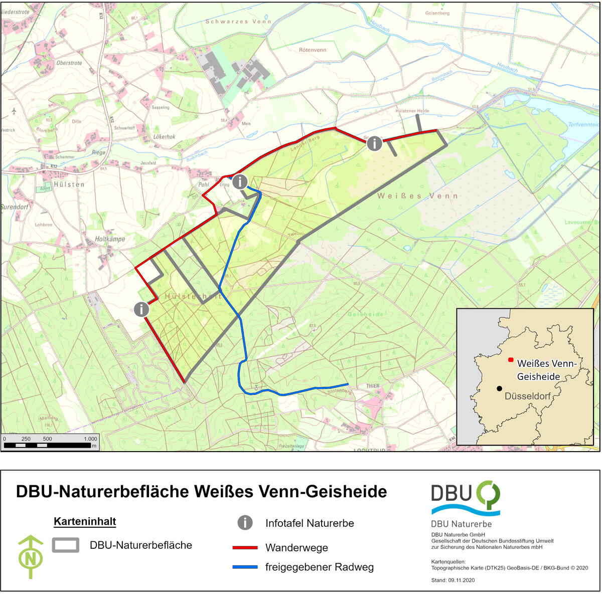 „Der Bund hat uns mit dem Schenkungsvertrag die Aufgabe anvertraut, die wertvollen Landschaften der DBU-Naturerbefläche mit ihren teils seltenen Tier- und Pflanzenarten langfristig zu erhalten und zu optimieren“, erklärt Marius Keite. Der Justiziar und Prokurist im DBU Naturerbe weiter: „Wir möchten unsere Flächen auf naturverträgliche Weise für die Bevölkerung erlebbar machen. Auf der DBU-Naturerbefläche Weißes Venn-Geisheide besteht jedoch Kampfmittelverdacht.“ Denn bis 2015 nutzte das Militär die Fläche als Scharfschießplatz für Infanterie. Keite betont daher, dass Besucher den im Sommer freigegebenen Weg über DBU- und BImA-Fläche zum eigenen Schutz nicht verlassen dürfen.