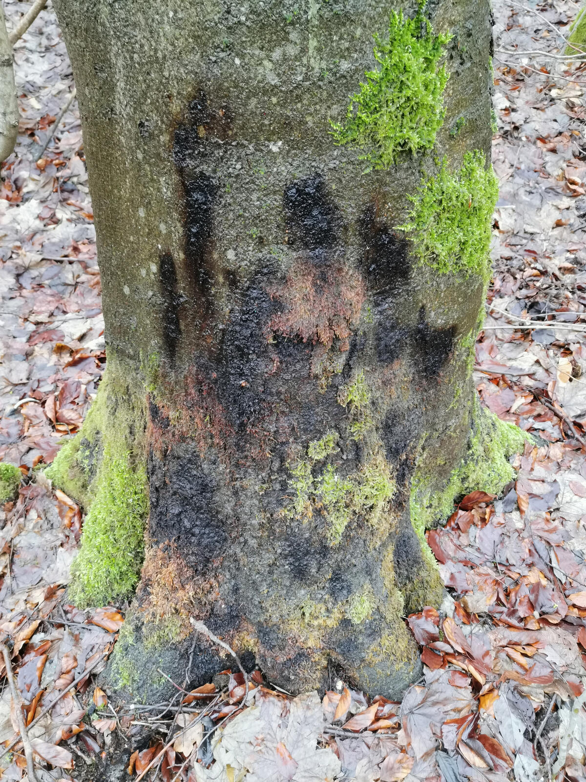Die DBU-Naturerbefläche Drosselberg liegt keine zehn Kilometer entfernt von Erfurts Altstadt und grenzt östlich an den Standortübungsplatz Erfurt an. Auch die 80 Hektar dieser heutigen Naturschutzfläche gehörten ehemals zum Militärübungsplatz. 2017 übergab sie der Bund als Teil des Nationalen Naturerbes an die gemeinnützige Tochtergesellschaft der Deutschen Bundesstiftung Umwelt (DBU), das DBU Naturerbe. Am Westrand der DBU-Naturerbefläche entlang des Hauptspazierweges Richtung Forsthaus Willrode sind sieben stattliche Laubbäume von rund 40 Zentimetern Stammdurchmesser vom Brandkrustenpilz befallen. Dieser Baumpilz gilt als aggressiv. „Fast unmerklich und am Anfang schwer erkennbar befällt er den Baum, in diesem Fall hauptsächlich Rotbuchen. Da er die stabilisierenden Eigenschaften des Holzes zersetzt, kann der Baum bei Wind oder Schneelast auf den Ästen schnell umknicken und die Sicherheit auf dem angrenzenden Weg gefährden“, erklärt Beatrix Schwarz vom Bundesforstbetrieb Thüringen-Erzgebirge. Als Revierleiterin betreut sie die Fläche vor Ort im Auftrag des DBU Naturerbes. Ein Forstunternehmen wird die betroffenen Gehölze in der letzten Februarwoche fällen. Zum Schutz der Spaziergänger wird der Hauptweg in dieser Zeit gesperrt. „Da die Fläche dem Naturschutz gewidmet ist, verbleiben die Stämme als Totholz im Wald. Dort bieten sie beispielsweise zahlreichen Insekten einen Lebensraum“, so die Revierleiterin.