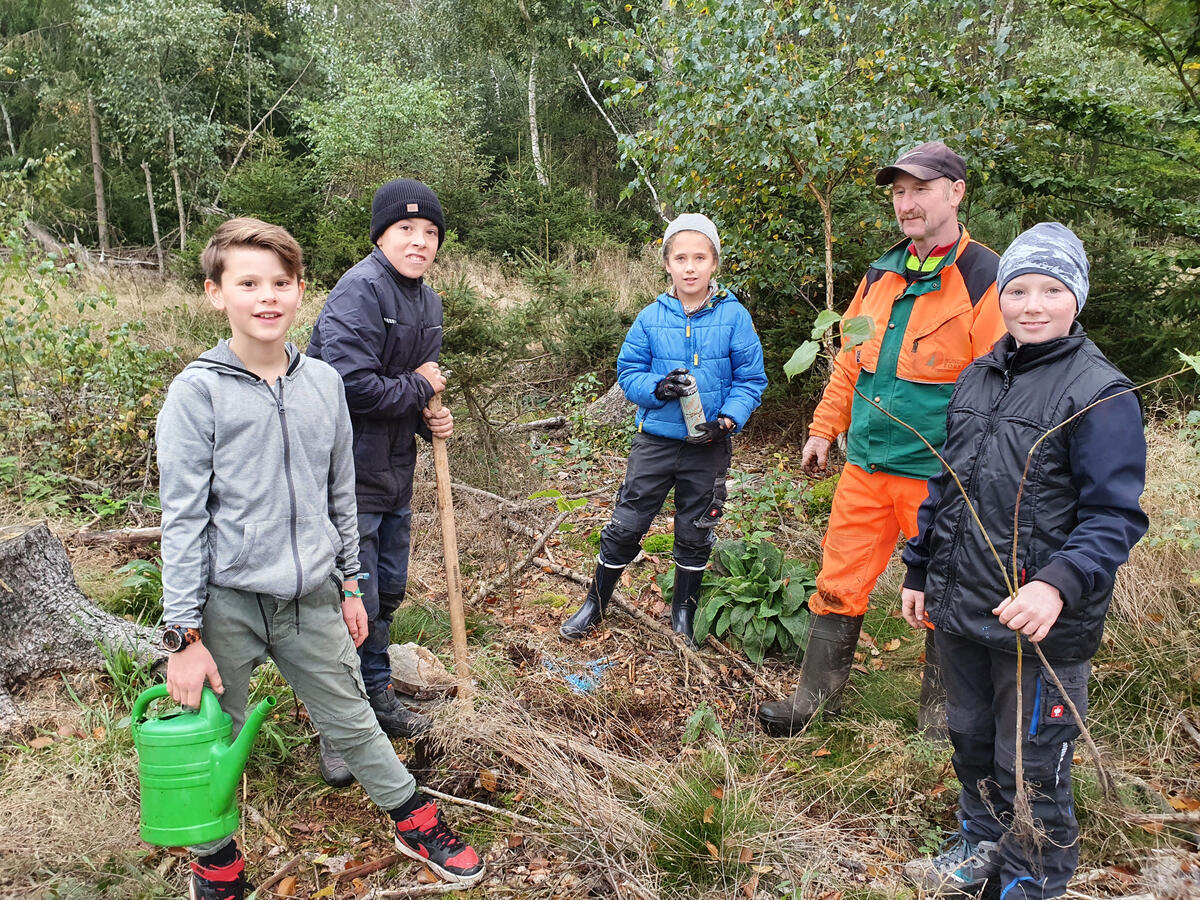 Schülerinnen und Schüler pflanzen Laubholz-Wildlinge