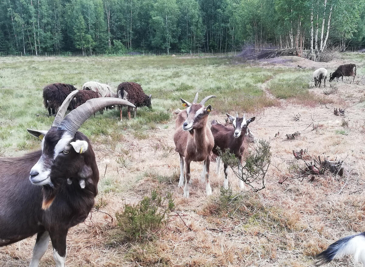 Bis in den Herbst hinein pflegten die Thüringer Waldziegen und Waldschafe auf der DBU-Naturerbefläche Hartmannsdorfer Forst westlich von Schneeberg das wertvolle Offenland. Die Tiere erhalten wahre Hotsports der Artenvielfalt: Die mosaikartig vorkommenden Heideflächen bieten verschiedenen Vogelarten wie beispielsweise dem Neuntöter geeignete Brutplätze. Mit ihrem Appetit drängen sie aufwachsende Birken zurück. Beide Tierrassen ergänzen sich dabei, denn Schafe fressen nur das Gras und die Kräuter, die Ziegen interessieren sich kulinarisch auch für den junge Baumwuchs.