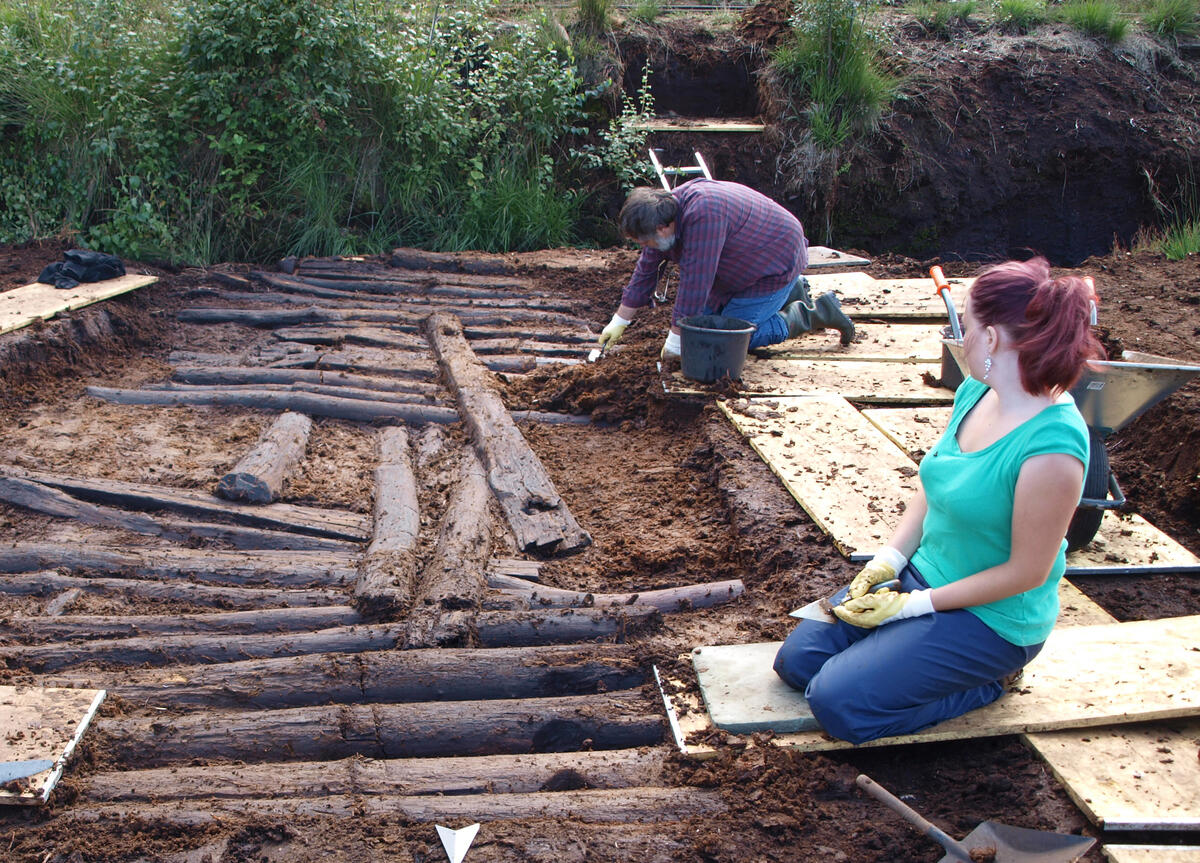 Hinzu kommt noch eine andere Herausforderung: Ebenso wie CO2 im Moorboden gespeichert, werden auch Kleinstlebewesen, Stäube oder Artefakte konserviert. „Moore sind kulturhistorische Bodenarchive“, sagt Constanze Fuhrmann, Leiterin des DBU-Fachreferats für Umwelt und Kulturgüter. „Sie beinhalten Informationen über Praktiken, Lebens- und Identitätsformen der Menschheit.“ Überreste von sogenannten Moorwegen, Gegenständen oder ganze Siedlungen hätten Forschende bereits gefunden. Aber das kulturelle Erbe in Mooren kann zu Konflikten in der Landschaft führen, so Fuhrmann. Archäologische Fundplätze würden manchmal durch Naturschutzmaßnahmen versehentlich zerstört. „Es freut uns daher sehr, dass dieser Interessenskonflikt jetzt thematisiert und für denkmalpflegerische wie Naturschutz-Maßnahmen sensibilisiert wird. Das ist ein wichtiger Baustein beim Schutz und Erhalt von Moorlandschaften.“
