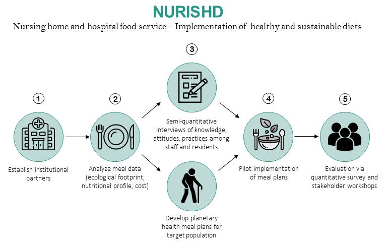 Im Vorhaben sollen erstmals die Voraussetzungen für eine Verpflegung nach den Richtlinien der PH Diet in Kliniken und Pflegeeinrichtungen des Gesundheitswesens sowie deren Umsetzbarkeit unter gleichzeitiger wissenschaftlicher Begleitung hinsichtlich ökologischer, ernährungswissenschaftlicher, psychologischer und wirtschaftlicher Aspekte betrachtet werden. Über Analysen und praktische Erprobungen sollen die Voraussetzungen geschaffen werden, um die PH Diet erfolgreich an Einrichtungen des Gesundheitswesens zu etablieren. Die erwarteten Produkte im Vorhaben sind eine modellhafte Umstellung des Verpflegungssystems auf die PH Diet, die Dokumentation von Hindernissen und erfolgreichen Strategien, Veröffentlichungen in der deutschen Fachliteratur, Empfehlungen für eine adaptierte PH Diet bei älteren Menschen, Empfehlungen zur Umsetzung einer Ernährungsumstellung in Gesundheitseinrichtungen, die Einbindung von Eigenbetrieben und externen Caterern, Publikationen in der englischsprachigen Fachliteratur, Veranstaltung eines Stakeholder-Events mit bis zu 1.000 Teilnehmenden, die modellhafte Einsparung von mindestens 30 Prozent der CO2-Emissionen und anderer Ressourcen im Verpflegungsbereich.
