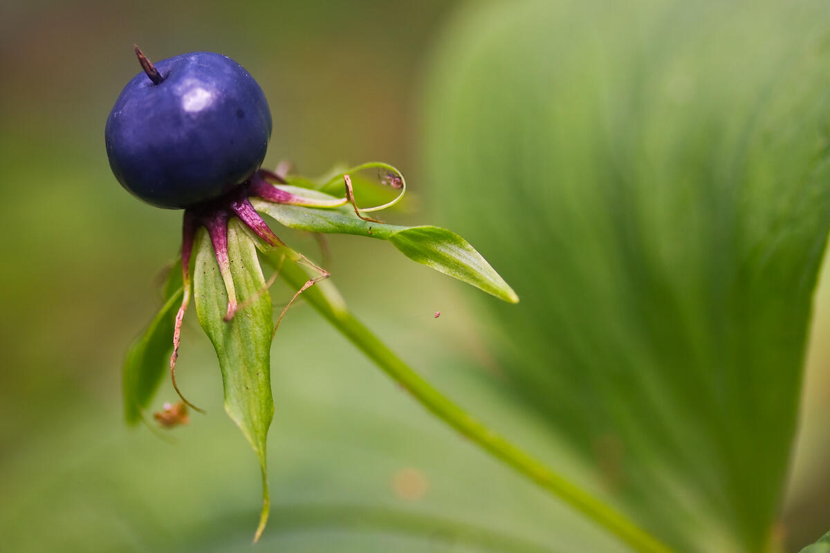 Die Einbeere ist gerade jetzt im Hochsommer gut zu erkennen: Die bis zu 30 Zentimeter große Pflanze hat vier Laubblätter unter der mittig sitzenden Frucht. Eine einzige schwarze oder dunkelblaue Beere thront quasi über der Pflanze. Einbeere – der Name ist Programm. Zeitgleich mit Heidelbeeren reift die Frucht zwischen Juli und September heran. Für den Menschen ist die glänzende Beere allerdings giftig. Mäuse und andere Waldtiere fressen die Beere jedoch und verbreiten sie mit ihren Ausscheidungen. Die Einbeere wächst oft in Gruppen, da sie sich wie Buschwindröschen vor allem unterirdisch über Erdsprossen, sogenannte Rhizome, ausbreitet. Mehrere überirdische Pflanzen können so unter dem Boden miteinander verbunden sein. Die einzelnen Triebe sind Klone, die genetisch identisch sind. Über die Rhizome und die einzige Beere kann sich die ‚Blume des Jahres‘ allerdings nur langsam vermehren – in einem Jahr überbrückt sie so oft nur weniger als 30 cm. Sie bevorzugt einen langlebigen, natürlichen Laubwald mit konstanten, stetig feuchten, Bedingungen. Klimawandel, Trockenheit und Bodenverwundungen durch schwere Maschinen machen der Einbeere zu schaffen.