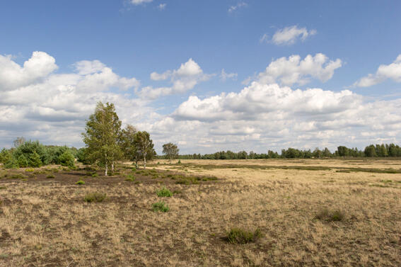 Auf rund 86 Prozent der Waldfläche im DBU Naturerbe in Brandenburg wachsen vor allem Kiefern. Als unzerschnittene, verkehrsarme Landschaften bieten sie Tierarten mit großem Raumanspruch optimale Lebensbedingungen, zum Beispiel dem Wolf. Alle vier Flächen beheimaten ein eigenes Rudel. Das DBU Naturerbe will monotone Nadelwälder in strukturreiche Laubmischwälder entwickeln und langfristig sich selbst überlassen. Rund 22 Prozent seiner Waldfläche in Brandenburg können sich bereits jetzt ohne menschliche Einflussnahme natürlich entwickeln. Nicht zuletzt bereichern zahlreiche Feuchtbiotope mit hochspezialisierten Bewohnern das Lebensraumspektrum auf den Flächen. „Insgesamt planen wir 85 Maßnahmen zur Erhaltung und Optimierung von Mooren, Feuchtwiesen oder auch Bächen sowie Teichen im Brandenburger Naturerbe“, weiß Belting. Davon wurden bereits zwölf Maßnahmen umgesetzt. So hat das DBU Naturerbe etwa mit Unterstützung der Krombacher Brauerei in die Wiedervernässung des Möllerschen Luchs im DBU Naturerbe Rüthnicker Heide investiert.