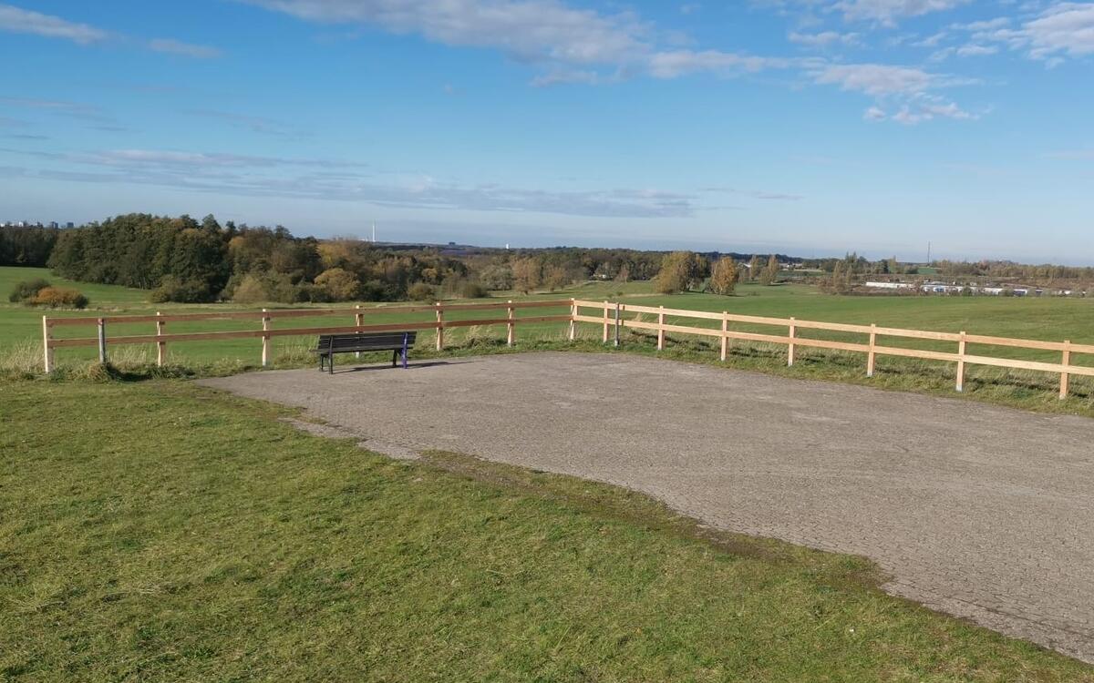 Cremlingen. Die gepflasterte Aussichtsplattform am Ehlerberg auf der DBU-Naturerbefläche Herzogsberge gibt Besuchern den Blick frei auf naturschutzfachlich wertvolle Wiesen und auf Sandkuhlen, in denen je nach Tiefe nur zeitweise oder an einigen Stellen dauerhaft Wasser steht – Feuchtbiotope, die Lebensraum für neun teils sehr seltene Amphibienarten sind. Um die Tier- und Pflanzenwelt rund um die verschiedenen Stillgewässer zu schützen, aber auch um die Schafbeweidung sicher zu stellen, hat die gemeinnützige Tochtergesellschaft der Deutschen Bundesstiftung Umwelt (DBU), das DBU Naturerbe, in Abstimmung mit der Unteren Naturschutzbehörde des Kreises Wolfenbüttel einen weiteren Baustein der gemeinsamen Besucherlenkung umgesetzt.
