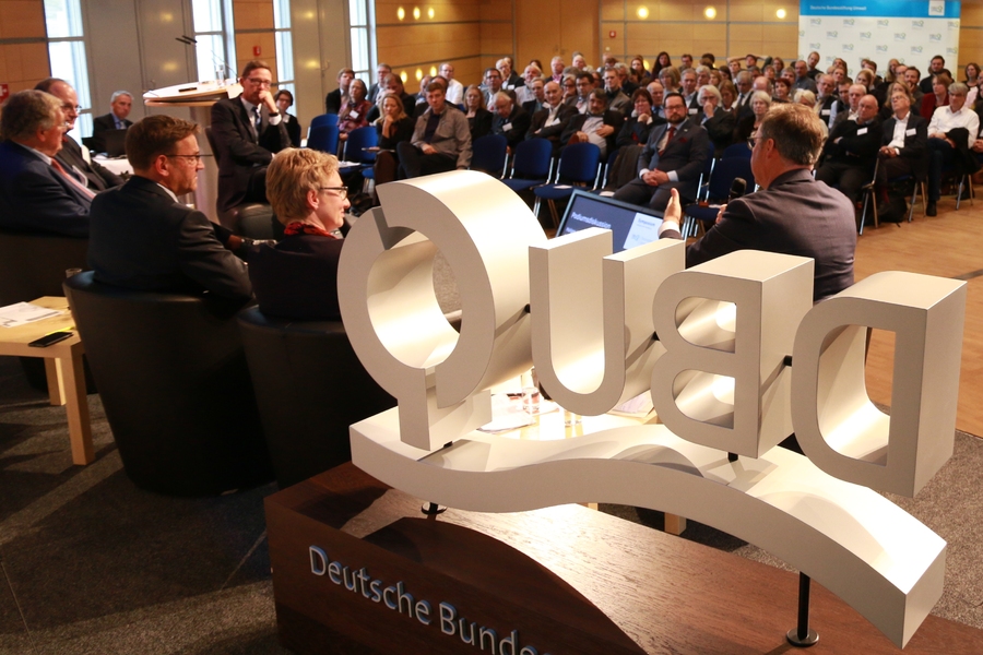 Vor der Preisverleihung findet jedes Jahr ein Symposium zu wechselnden Umweltthemen statt. Dort diskutieren Expertinnen und Experten verschiedener Disziplinen mit Fachleuten aus DBU-Projekten und präsentieren ihre Forschungsergebnisse.