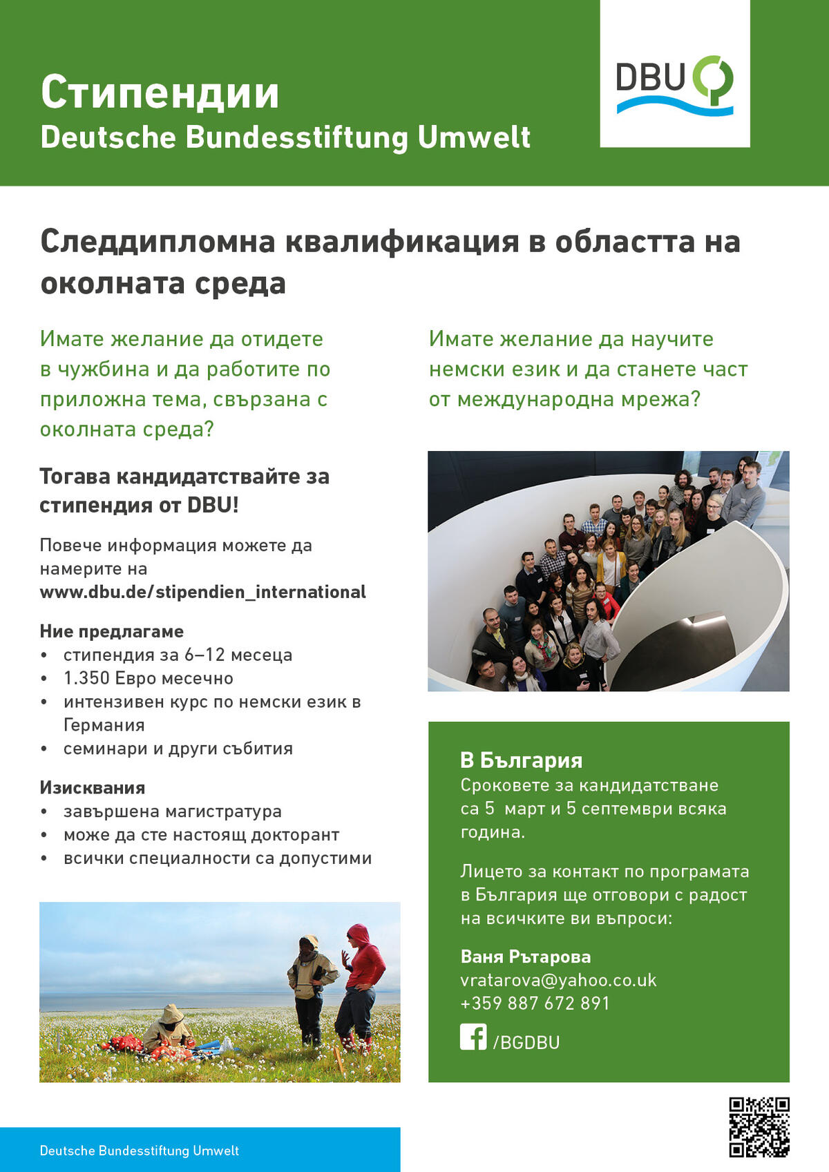 Our contact person in Bulgaria is Vanya Ratarova-Georgieva, a former DBU fellowship holder.Of course, questions can also be sent directly to us, the DBU (c.fuhrmann@dbu.de).
