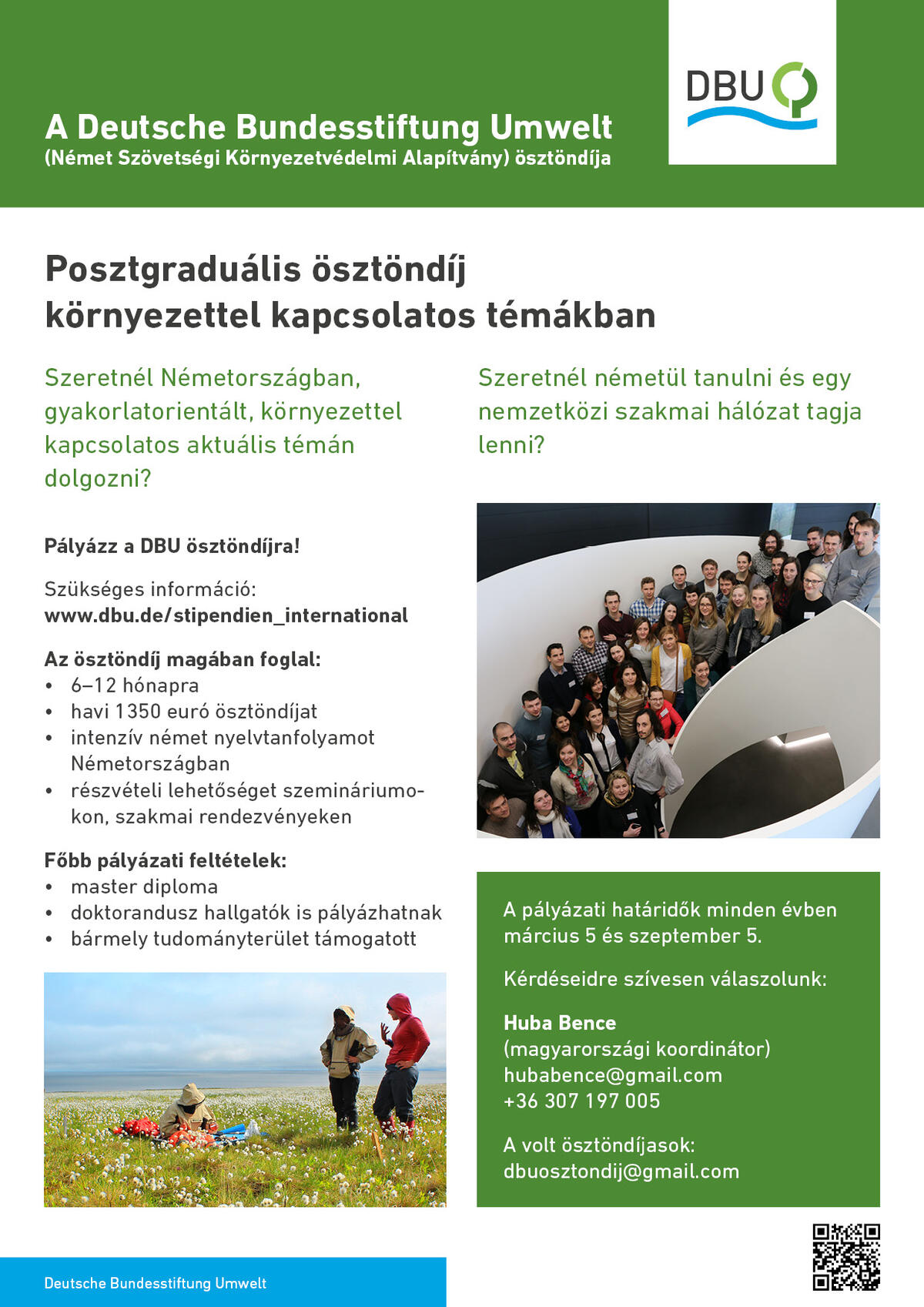 In 2008, the Hungarian DBU Alumni Association was founded to ensure continuous contact among current and former fellowship holders and to build up a network of environmental experts. Furthermore, the cooperation with other DBU alumni associations is to be promoted.