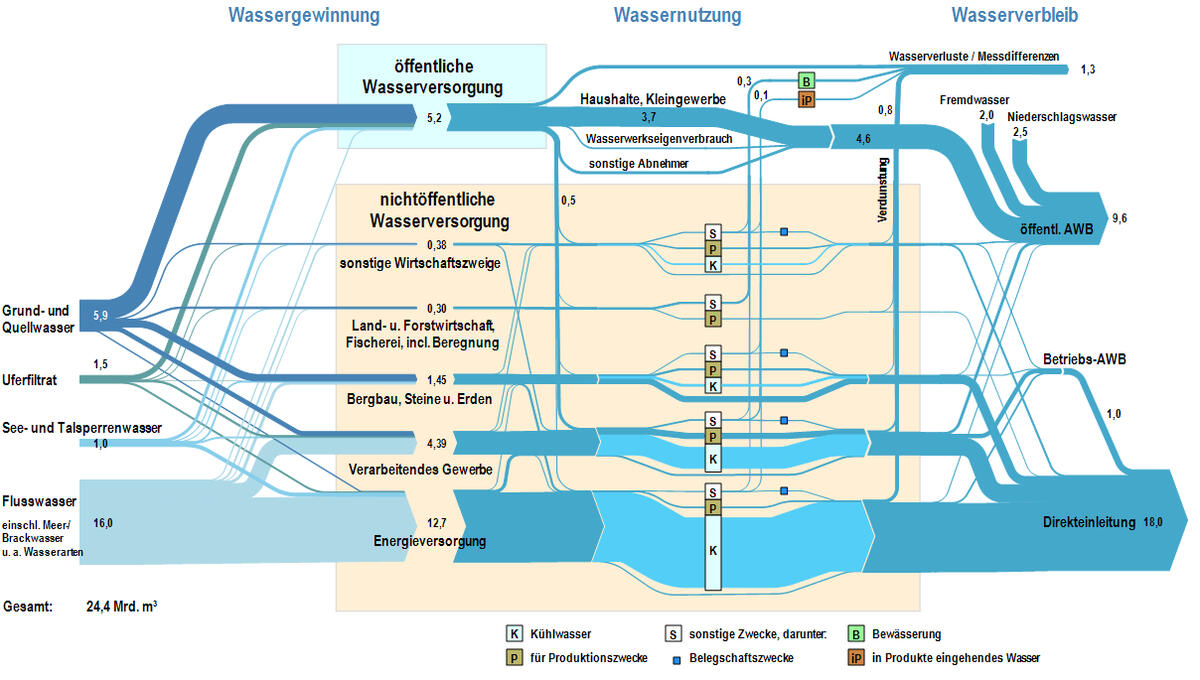 Die nähere Analyse der Sektoren Wasser und Energie zeigt, auf welche vielfältige Weise die Energiewirtschaft mit der Wasserwirtschaft in Deutschland verknüpft ist. In vielen Fällen ist dieses systemische Zusammenwirken sogar essentiell für die Funktion der eingesetzten Verfahren und Technologien beider Bereiche. Die Kenntnis der Wechselwirkungen ermöglicht den Vergleich und die Bewertung verschiedener Energietechnologien hinsichtlich deren Inanspruchnahme von Wasserressourcen und – insbesondere während des im Rahmen der Energiewende stattfindenden Umbaus des Energiesystems – die Identifikation von neuen Potenzialen zur Nutzung von Synergieeffekten für beide Wirtschaftsbereiche.