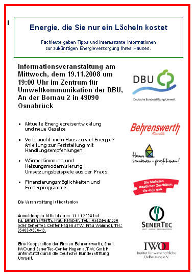 Anmeldungen bitte bis zum 11.11.2008 bei Firma Behrenswerth, Frau Kemper, Tel.: 05424-647090 oder SenerTec Center Hagen aTW, Frau Wamhof, Tel.: 05405-9806-19