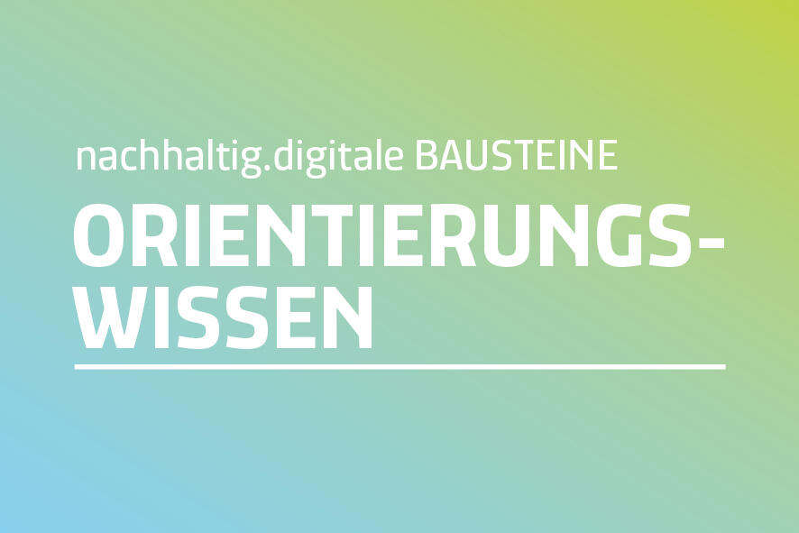 Im sechsten Event in der Reihe Bausteine im Dialog widmen wir uns dem Thema "Orientierungswissen". Wo lassen sich Ansatzpunkte für eine nachhaltige Digitalisierung finden? Was versteckt sich hinter den Schlagwörtern digitaler Technologien wie Künstlicher Intelligenz? Wo kann sich Ihr Unternehmen verorten? Wir sprechen mit unseren Expert*innen. Im Event wird zunächst eine Einführung in eine nachhaltige Digitalisierung gegeben und anschließend präsentieren sich Akteure, die neben nachhaltig.digital, Orientierung geben.
