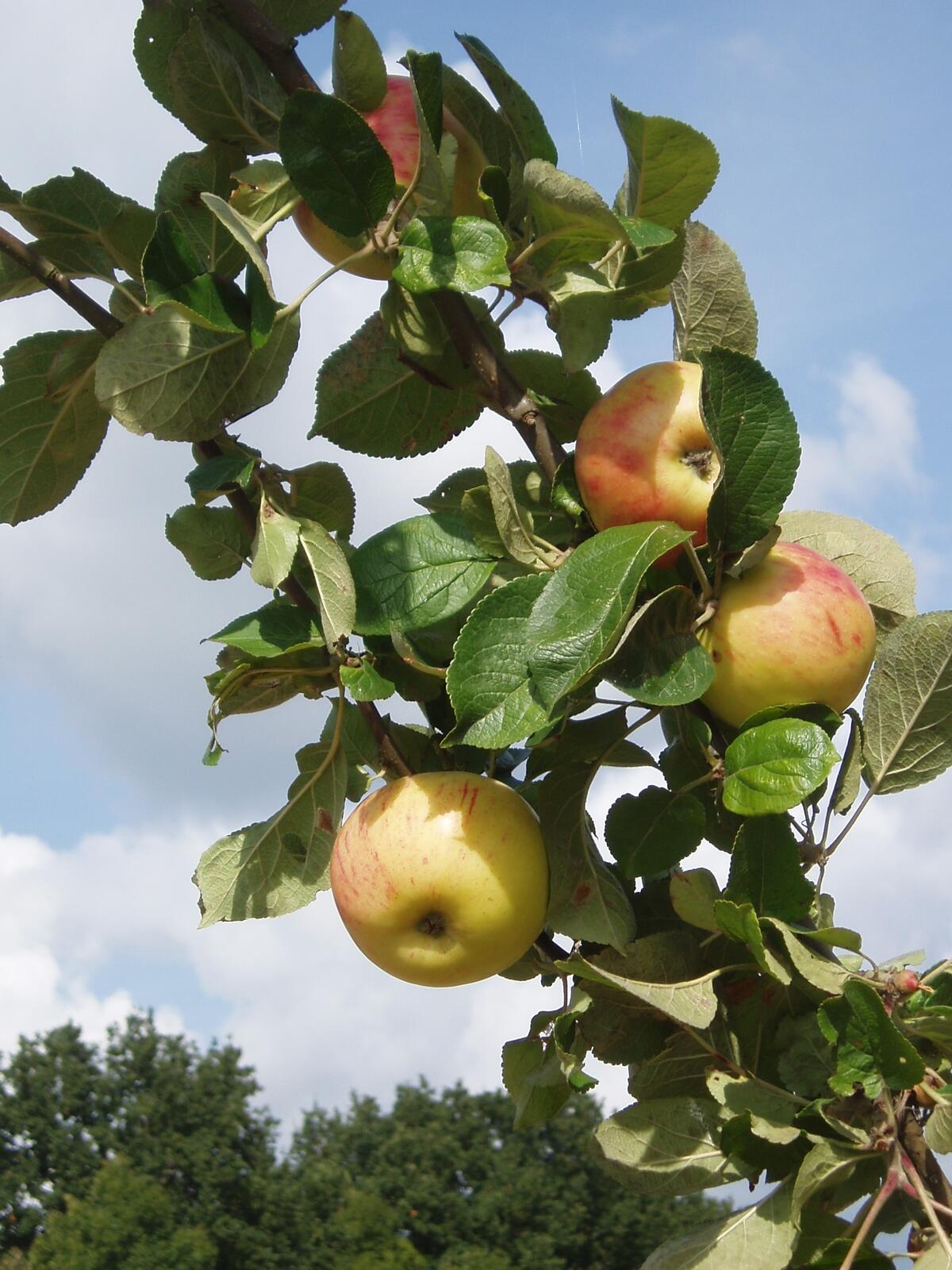 An den Apfelbäumen des Stipendiatenparks reifen die ersten Äpfel heran und erste Geschmacksproben verliefen positiv.