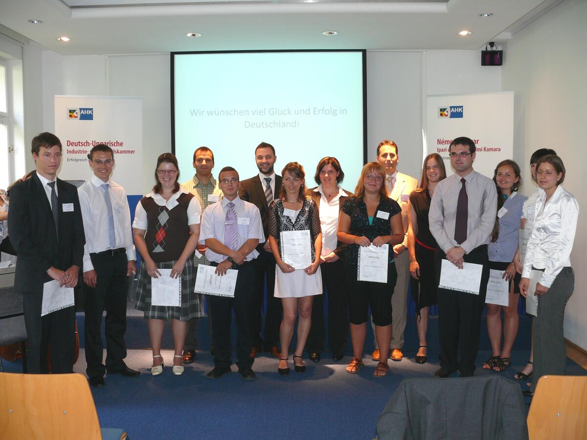 Am Samstag, den 14.08.2010, fand die Verleihung der Stipendien für 12 neue ungarische Stipendiaten in der Deutsch-Ungarischen Industrie- und Handelskammer in Budapest statt. An der Zeremonie nahm der Geschäftsführer der Deutsch-Ungarischen Industrie- und Handelskammer Herr Brennauer, Herr Professor Bercik von der Ungarischen Akademie für Wissenschaften, Herr Huba vom Ministerium für Energie und Frau Dr. Freyer von der Deutschen Bundesstiftung Umwelt teil. Die Veranstaltung wurde vom Netzwerk der ehemaligen ungarischen Stipendiaten organisiert.