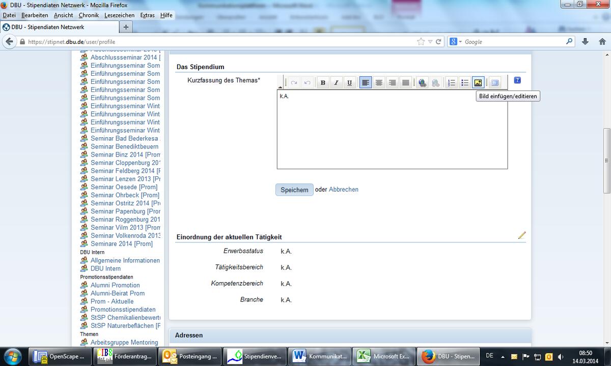 Von unserer Kommunikationsplattform gibt es wieder etwas Neues zu berichten. Nach ca. 1 1/2 Jahren Laufzeit nutzen nun 1.071 Stipendiatinnen und Stipendiaten sowohl aus dem Promotionsstipendienprogramm als auch dem MOE-Austauschstipendienprogramm das Portal! Damit sind 61 % aller DBU-Stipendiaten angemeldet.