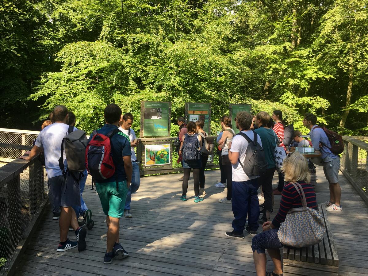 Aufgelockert wurde das Programm insbesondere durch den am Mittwoch stattfindenden Exkursionstag zum Naturerbe-Zentrum Rügen in Prora. Vormittags begingen wir den zugehörigen Baumwipfelpfad, der durch Buchenmischwald und Erlenbrüche führt und von seiner Aussichtsplattform einen Rundblick über Baumwipfel sowie Teile Rügens bietet. Nach der Mittagspause entdeckten wir die angrenzenden DBU-Naturerbeflächen bei einer naturkundlichen Wanderung. Von dieser nahmen wir nicht nur einige Zecken, sondern auch viele wunderschöne Eindrücke und neues Wissen mit. Ein entspannter Grillabend am Hafen bei herrlichem Wetter und Meeresrauschen bildete den krönenden Abschluss dieses durchweg gelungenen Seminars.