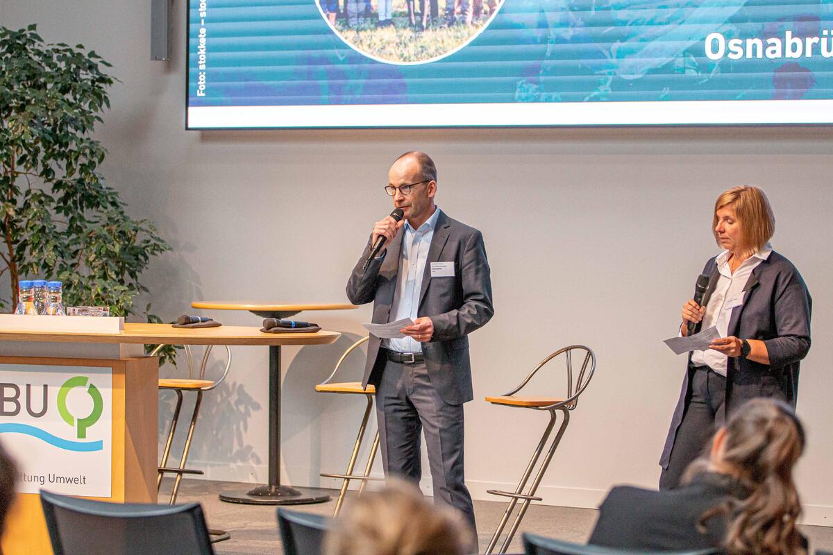 Zu Beginn begrüßten Alexander Bonde, DBU-Generalsekretär, und digital zugeschaltet Prof. Dr. Antje Boetius, Alfred-Wegener-Institut Bremerhaven und DBU-Kuratoriumsmitglied sowie DBU-Umweltpreisträgerin, die Gäste.