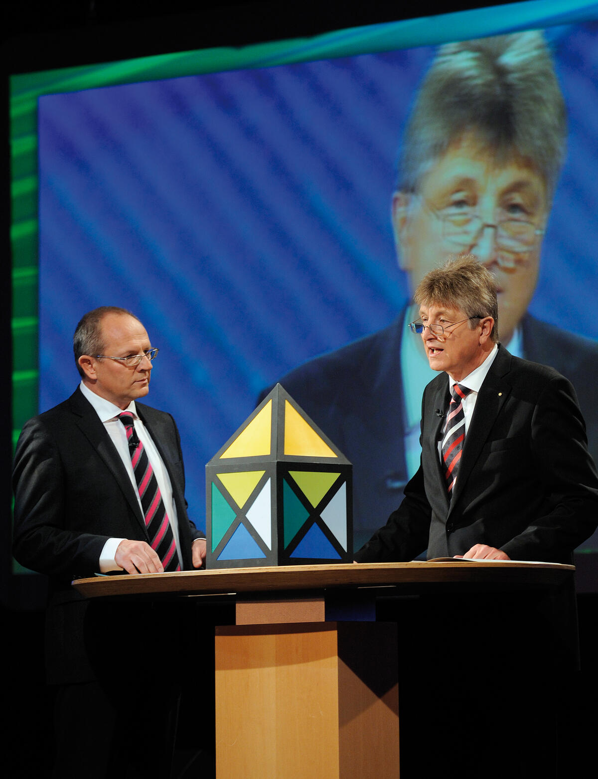 DBU-Generalsekretär Dr.-Ing. E. h. Fritz Brickwedde (rechts) stellte die Kampagne »Haus sanieren – profitieren!« vor. Links: Moderator Stefan Schulze-Hausmann.