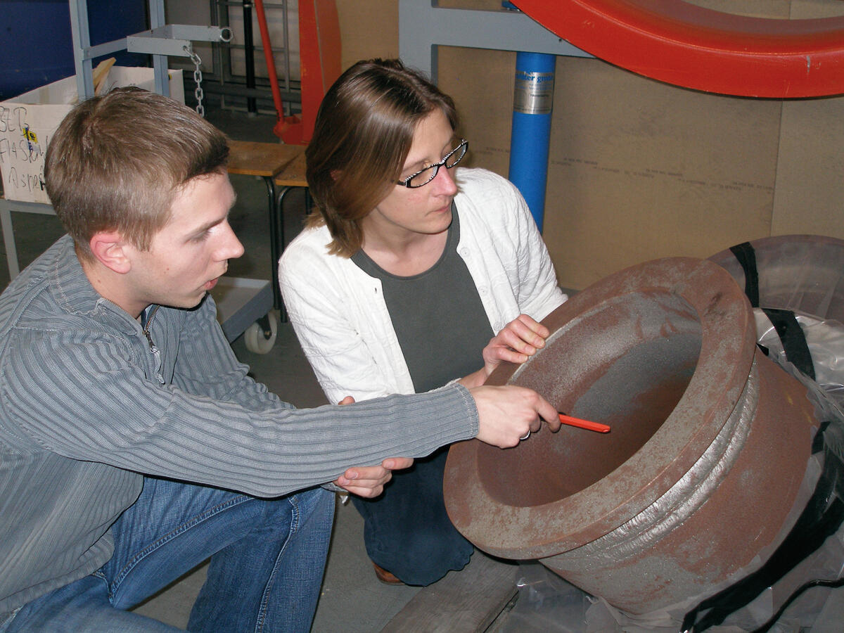 Erfolgreich waren ferner Beschichtungsversuche mit Gusswerkstoffen und speziellen Werkzeugstählen auch mit anschließender Härtung, die weitere interessante Anwendungsmöglichkeiten eröffnen. Erste praxisrelevante Anwendungsversuche sind bereits erfolgt. Unter anderem war der Praxiseinsatz bei mobilen Baustoff-Mischeinrichtungen sehr erfolgversprechend.