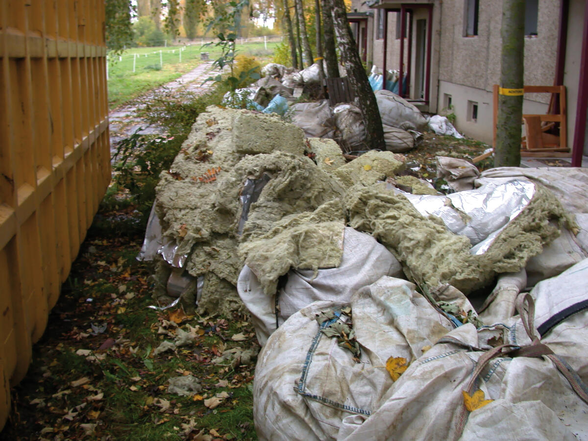 Im Rahmen von Gebäuderückbau und Sanierung fallen in Deutschland jährlich 10 Mio. Kubikmeter Mineralwolleabfälle an, die auf Sondermülldeponien verbracht werden müssen. Mineralwolle, die vor 1996 verwendet worden ist, gilt als krebserzeugend oder krebsverdächtig. Der Umgang mit alten Mineralwolle-Dämmstoffen ist heute nur noch im Zuge von Abbruch-, Sanierungs- und Instandhaltungsarbeiten zulässig. Analog zum Gefahrstoff Asbest sind umfangreiche Schutzmaßnahmen zu treffen. Bei neuen Dämmstoffen aus Mineralwolle wurde sowohl die Fasergeometrie als auch die chemische Zusammensetzung soweit verändert, dass diese als nicht mehr krebserzeugend eingestuft werden. Bisher gibt es hingegen noch kein sicheres Verfahren zur Verwertung gebrauchter Mineralwolle ähnlich der Asbestverwertung. Es ist nur eine Verbringung des aufgemahlenen Gefahrstoffes im Ziegelton bekannt.