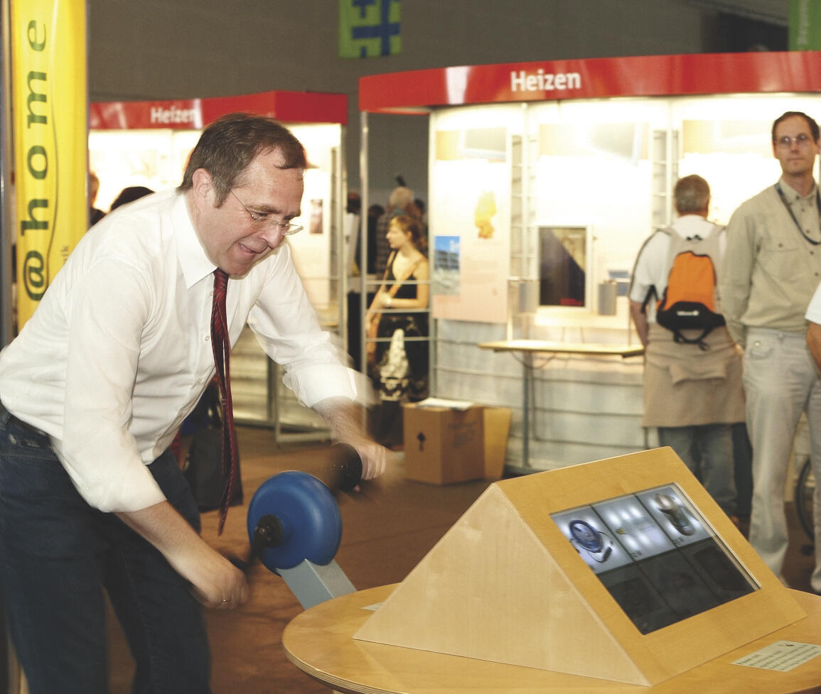 Anlässlich des 32. Deutschen Evangelischen Kirchentages (20.-24. Mai) in Bremen stattete Bremens Umwelt- und Bausenator Reinhard Loske der viel gefragten DBU-Ausstellung Energie@home einen Besuch ab. Wie schon beim Katholikentag im Vorjahr in Osnabrück war auch die Klimakampagne des Evangelischen Kirchentages von der DBU gefördert worden.
