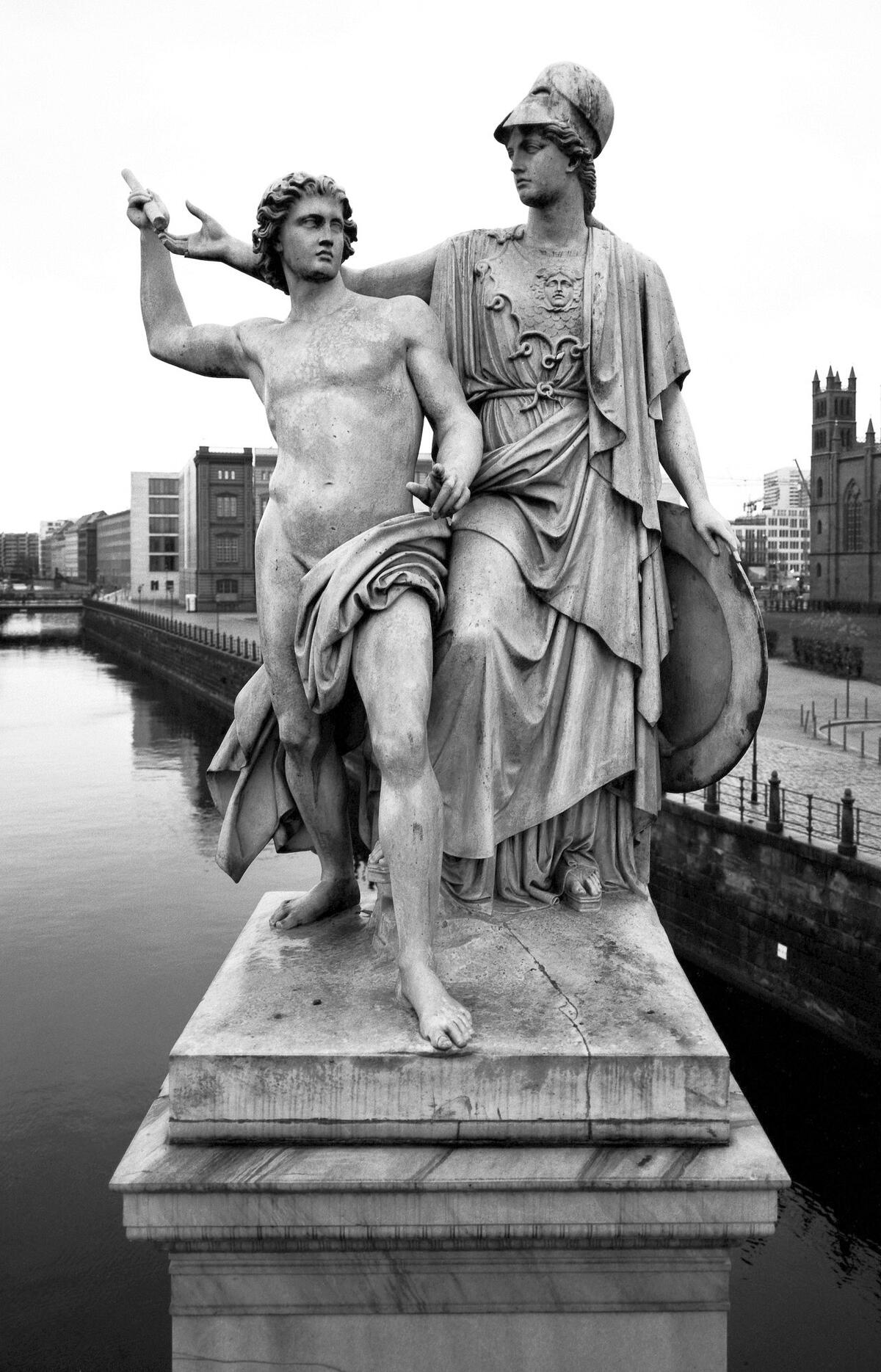 Das relativ hohe Fahrzeugaufkommen ist Ursache der intensiven Konzentration von Luftschadstoffen, die auf den empfindlichen Carrara-Marmor einwirken. Stickoxide, aber auch Feinstaub und Ruß sowie verschiedene andere Emissionen, sind nachweisbar. Die Verbindung einer intensiven anthropogenen Schadstoffbelastung, die in wässriger Lösung auf die empfindliche Oberfläche des Carrara-Marmors einwirkt, mit den jahreszeitlichen Temperaturschwankungen und den winterlichen Frost-Tau-Wechseln führt zu einer besonderen Gefährdung des Marmors. Im Rahmen des Projekts des Landesdenkmalamts Berlin werden die Konservierungsmethoden der Brückenfiguren und das 2003 erstellte Pflege- und Wartungskonzept »Unter den Linden« weiterentwickelt. In Zusammenarbeit mit der Technischen Universität Dresden, der Bundesanstalt für Materialprüfung Berlin, dem Geowissenschaftlichen Zentrum der Universität Göttingen und der Berliner Universität der Künste entsteht dabei eine Einhausung für die Brückenfiguren, die technische Innovation mit einer funktionalen und zeitgemäßen Gestaltung modellhaft verbinden soll. Die Einhausung von Denkmälern mit Holz in der kalten Jahreszeit hat eine lange Tradition, wenngleich die positive Wirkung dieser Maßnahmen und die genaue Wirkungsweise bisher jedoch nicht bekannt sind. Der Aufbau der Holzeinhausungen ist zudem umständlich, und die Lagerung über die warme Jahreszeit erfordert viel Platz, außerdem ist die Sichtbarkeit des Denkmals in den Wintermonaten so nicht gegeben. In dem geförderten Projekt werden deshalb neuartige Einhausungen mit unterschiedlichen Materialen untersucht und in Bezug auf die mikroklimatischen Bedingungen getestet.