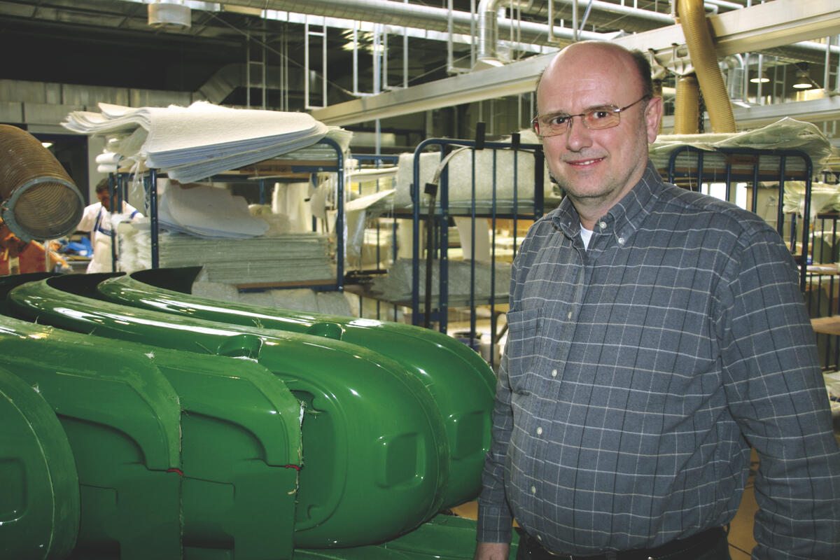 Das Steuerpult des ICE, das Führerhaus eines »Pistenbullies« in Tirol und der Kotflügel des John Deere-Traktors haben eines gemeinsam – sie alle sind Produkte aus dem Hause Lätzsch. Der mittelständische Kunststoffverarbeiter aus Thierbach bei Leipzig hat mit DBU-Förderung eine innovative Sprühtechnik für Polyurethan-Kunststoffe (PUR) entwickelt. Das neue Multitec®-Verfahren kommt ohne Styrol und Lösungsmittel aus. Über einen Sprühkopf wird schnell härtendes, mehrkomponentiges PUR in eine offene Form gesprüht. Aufwändiges Entlüften und weitere Nacharbeiten sind nicht nötig. Weniger Arbeitsschritte, eine schnelle und einfache Verarbeitung und die flexible Nutzung je nach Anwendungsfall sind weitere Pluspunkte des Verfahrens.