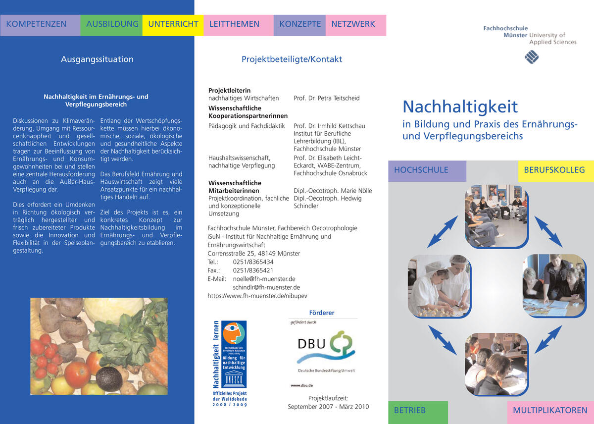 Rund 50 Gäste verfolgten die Fach- und Abschlussveranstaltung des Projekts »Nachhaltigkeit in Bildung und Praxis des Ernährungs- und Verpflegungsbereichs« im Zentrum für Umweltkommunikation (Osnabrück). Fachreferenten, Experten und Projektteilnehmer diskutierten die Bedeutung und Perspektiven einer Berufsbildung für nachhaltige Entwicklung im Zusammenhang mit den erreichten Arbeitsergebnissen. DBU-Generalsekretär Dr.-Ing. E. h. Fritz Brickwedde hob besonders hervor, dass das Projekt auf die Vermittlung und Förderung von Handlungskompetenzen für ein nachhaltiges Handeln in der beruflichen Bildung für »Ernährung und Hauswirtschaft« ausgerichtet sei. Bemerkenswert sei ferner, dass zahlreiche lernortübergreifende Einzelprojekte und Aktionen mit Modellcharakter wie zum Beispiel die Umgestaltung eines nachhaltigen Schulbistros oder das Einzelprojekt Ressourceneinsparung bei der Nahrungszubereitung auf den Weg gebracht wurden. Die Materialien für Unterricht und Ausbildung sollen im Sommer 2010 veröffentlicht werden.