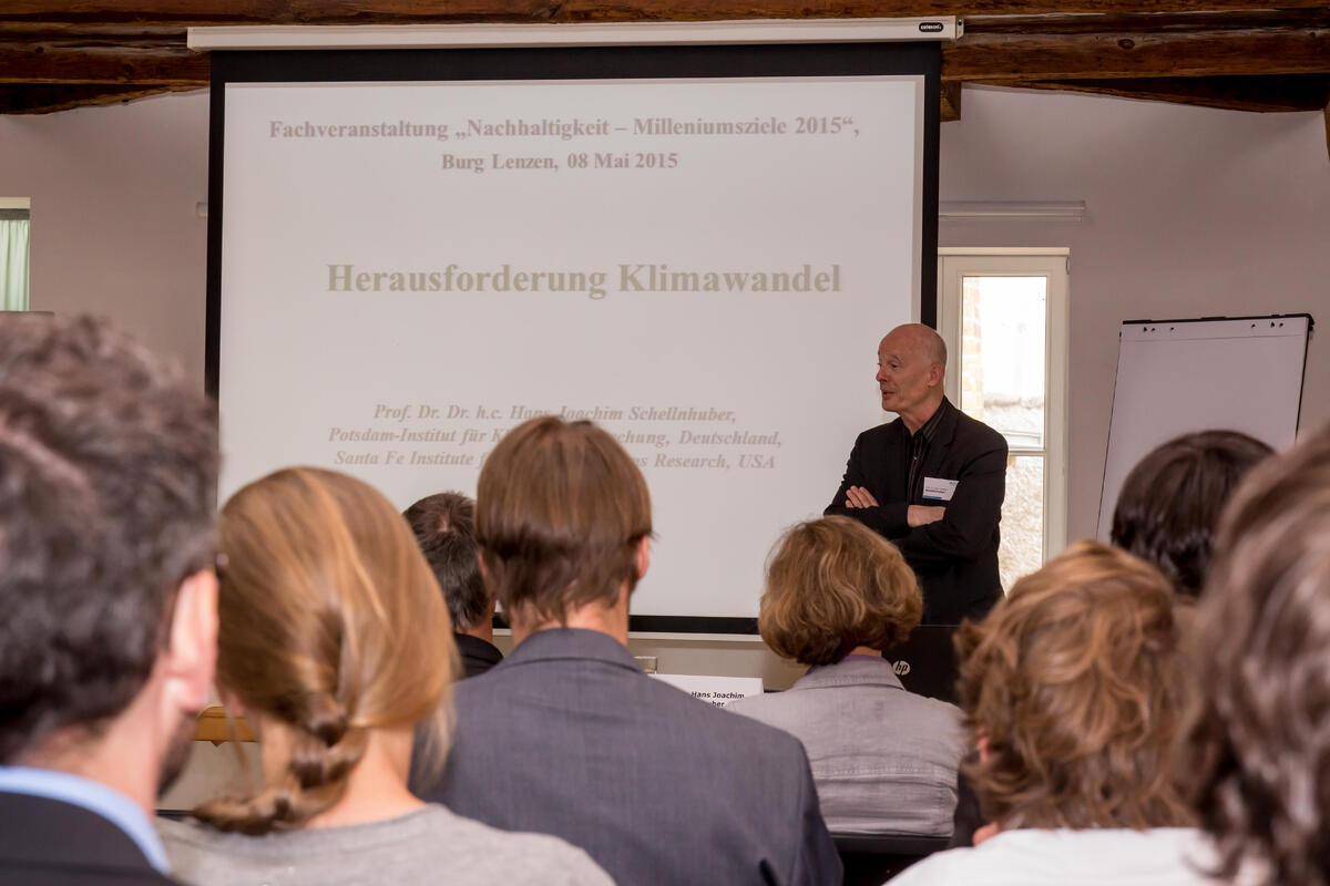 Anlässlich der für September angekündigten Verabschiedung der Sustainable Development Goals der UN fand vom 8.–10. Mai 2015 eine Fachtagung der Alumni-Vereinigung des DBU-Promotionstipendienprogramms (DBU-Alumni.de) statt. Schauplatz der Veranstaltung mit prominenten Umweltpreisträgerinnen und Umweltpreisträgern zum Thema »Nachhaltigkeit« war Burg Lenzen an der Elbe. Bedauerlicherweise mussten Prof. Dr. Klaus Töpfer (ehem. Generalsekretär des Umweltprogramms der Vereinten Nationen und Direktor des Institute for Advanced Sustainablity Studies IASS, Potsdam) und Prof. Dr. Rainer Grießhammer (Direktor des Ökoinstituts Freiburg) aufgrund des Lokführerstreiks absagen. Dadurch bot sich die Gelegenheit, den einleitenden Vortrag eines der weltweit führenden Klimaforscher, Prof. Dr. Hans-Joachim Schellnhuber, Direktor des Potsdam-Instituts für Klimafolgenforschung e. V., zu den Herausforderungen des Klimawandels auszudehnen und ausführlich zu erörtern. In seinem Vortrag schilderte der Umweltpreisträger von 2007 anschaulich die Kohlenstoffgeschichte