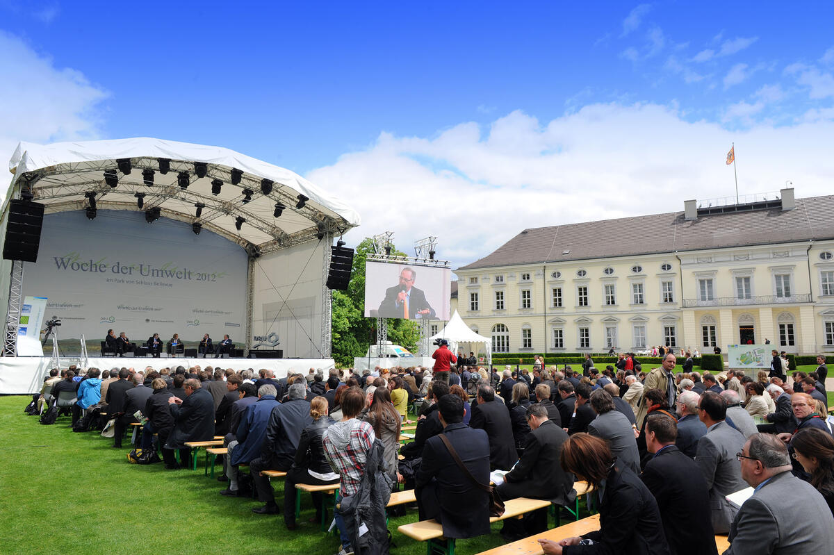 For the fifth time since 2002, “Environment Week” will take place again this year in the park at the federal President’s official residence in Berlin. On June 7th and 8th, some 200 exhibitors selected by an expert jury will introduce their innovative ideas and projects for sustainability. For two days, environmental protection and the associated economic and social opportunities will once again be placed squarely in the public’s focus. The approximately 200 exhibitors from Germany and Switzerland will utilize the impressive backdrop of the palace to present themselves on almost 4,000 square meters of park space with their specialized work in climate protection, energy, resources, soil and biodiversity, mobility and traffic, construction and living space.