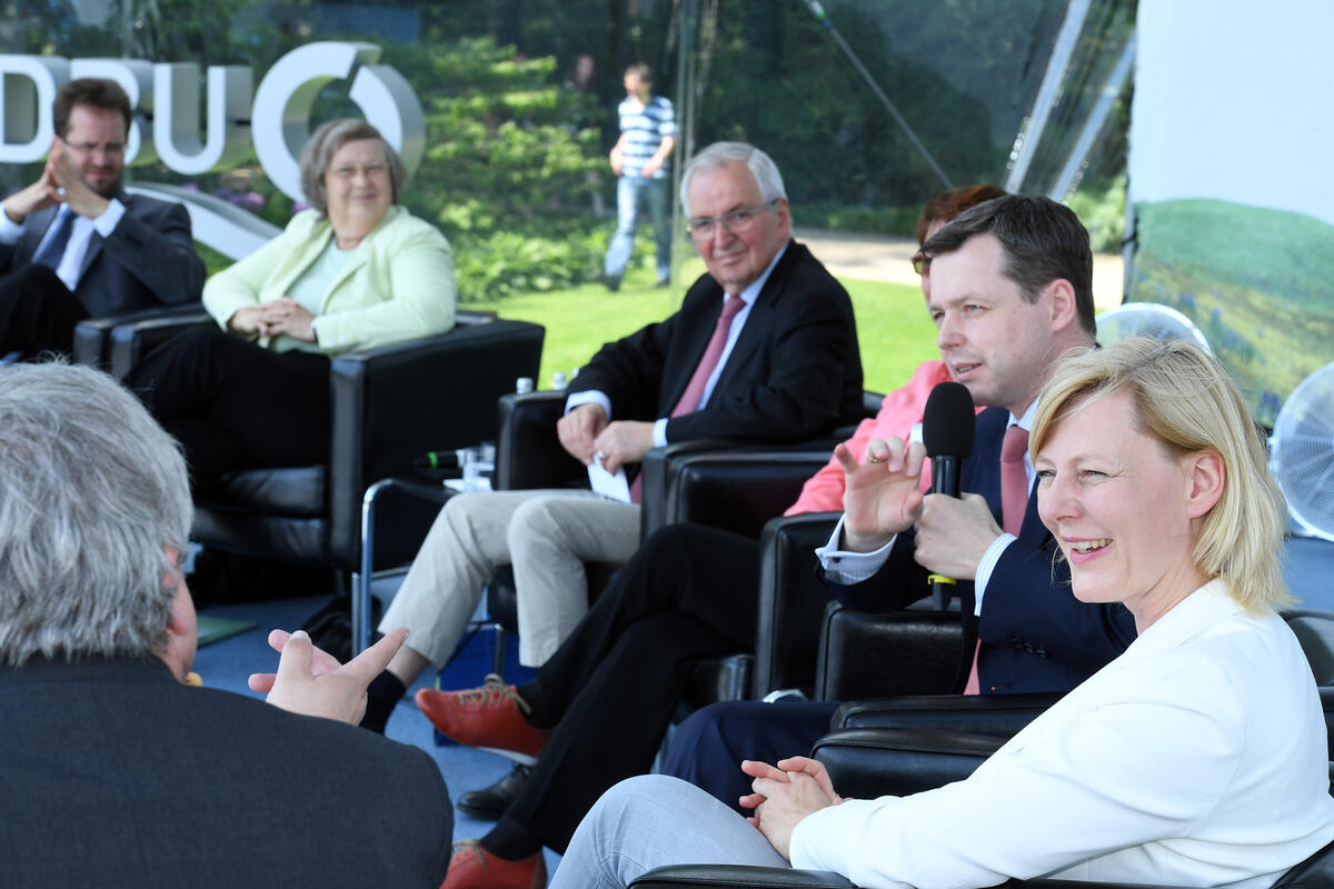 Thomas Silberhorn, Parlamentarischer Staatssekretär im Bundesentwicklungsministerium, mahnte: „Wenn alle so leben würden, wie wir das in Deutschland und Europa tun, dann bräuchten wir unsere Erde dreimal. In der Tat müssen wir unsere Lebens- und Wirtschaftsweise in allen Bereichen auf den Prüfstand stellen.“ Welche konkreten Konsequenzen daraus für Deutschland erwachsen, thematisierte der Staatssekretär nicht. Auch Petra Gerstenkorn, Vertreterin von ver.di und Mitglied im Kuratorium der DBU, äußerte sich: Für Gewerkschaften bedeute die Energiewende einen Spagat zwischen den Interessen der Beschäftigten, den Anliegen der Politik und dem, was Unternehmen leisten können.