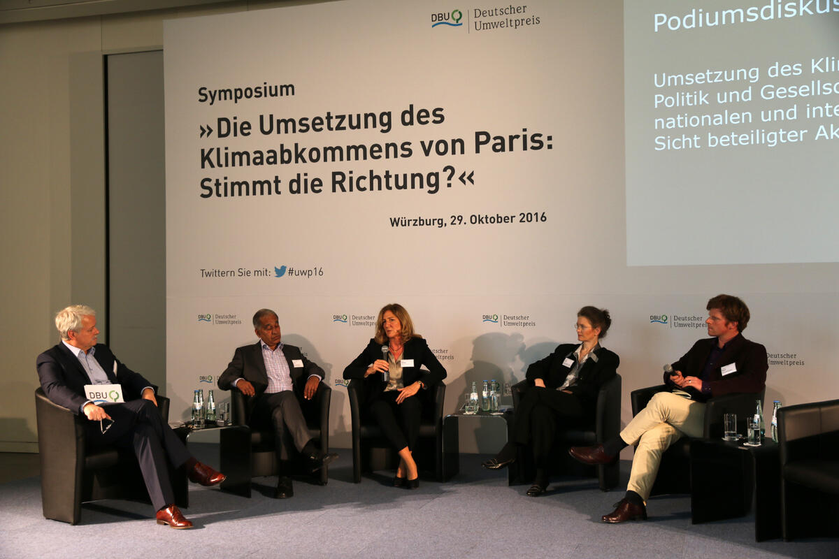 Kurz vor der Klimakonferenz in Marrakesch Anfang November fragten die Referenten des DBU-Symposiums »Stimmt die Richtung bei der Umsetzung des Paris-Abkommens?« Die Veranstaltung am Vortag der Umweltpreisverleihung in Würzburg bewegte sich damit in historischem Umfeld und rückte mit dem Klimawandel eine der vier Planetaren Grenzen ins Zentrum der Debatte, die nach Darstellung des vorjährigen DBU-Umweltpreisträgers Johan Rockström bereits überschritten sind. Das Symposium wurde versiert und umsichtig von Volker Angres (ZDF) moderiert.