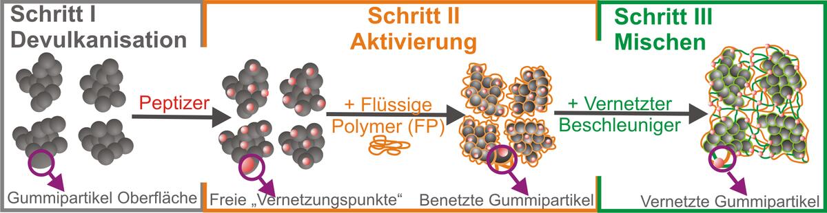 Mit einem aktuellen, von der DBU geförderten Vorhaben der Hochschule Osnabrück sollen die genannten Recyclingwerte noch getoppt werden: Angestrebt sind Wiederverwertungsquoten von bis zu 100 Prozent. Diese Quoten sollen durch zwei Maßnahmen realisiert werden: Erstens durch die Zusammenfassung der Devulkanisierung des Altgummis und die erforderliche Wiedervernetzung des Materials in einen Prozessschritt. Zweitens durch die Integration aller nötigen Verfahrensschritte in einen kontinuierlichen Prozess, der in einem Extruder vollzogen werden soll. Ein Extruder ist ein Gerät, das feste bis dickflüssige Massen erwärmt, mischt und unter hohem Druck gleichmäßig aus einer formgebenden Öffnung herauspresst. „Standardware von der Stange funktioniert für die Anforderungen im Projekt nicht, weil die Verweilzeiten des Kautschuks im Extruder auf mehrere Minuten erhöht werden müssen“, erklärt Prof. Dr. Carmen-Simona Jordan, Projektleiterin des Vorhabens. „Erst nach vielen Fachgesprächen ist es gelungen, mit der Firma Brabender GmbH & Co. KG einen geeigneten Extruder-Anbieter zu finden.“