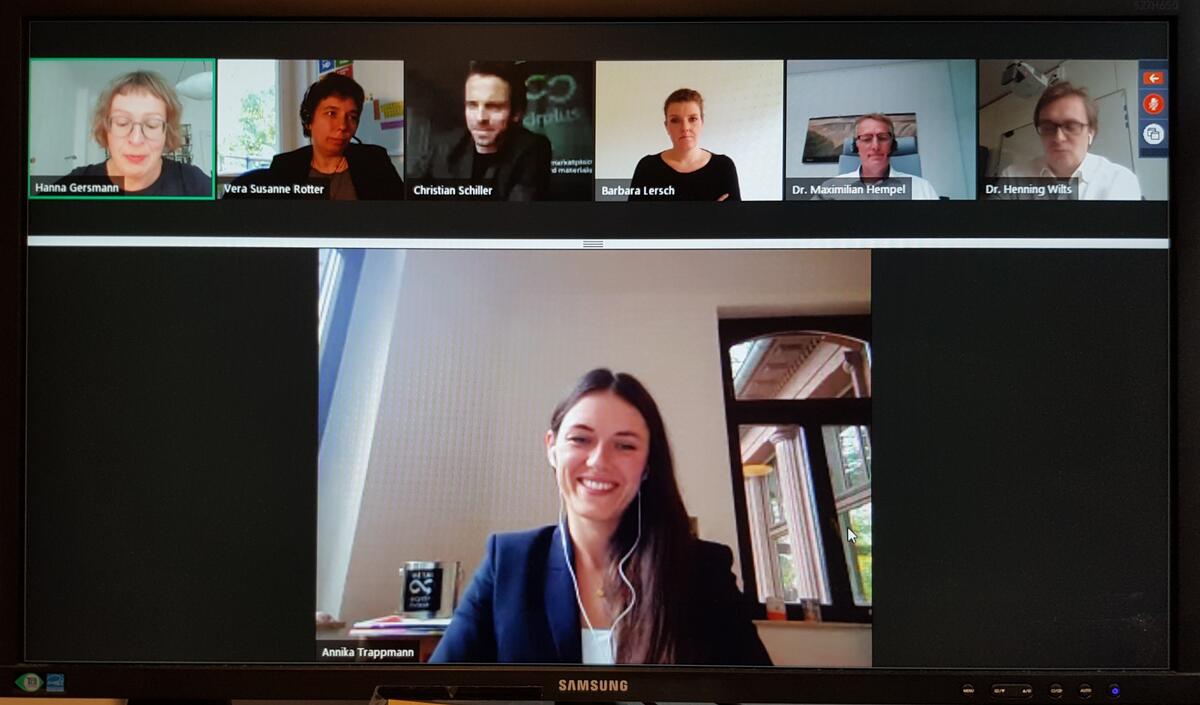 Annika Trappmann, diesjährige Umweltpreisträgerin, wurde in die Diskussion zugeschaltet und berichtete aus der Praxis: „Ich bin bei dem Verband ‚Klimaschutz-Unternehmen‘ tätig. Vom Kleingewerbe bis zum Großunternehmen sind Firmen dabei. Der Wandel geht auch in großen Unternehmen. Man muss wollen und Geduld haben." Moderiert wurde das digitale Symposium von Hanna Gersmann, Journalistin mit dem Schwerpunkt Umwelt- und Wirtschaftspolitik.