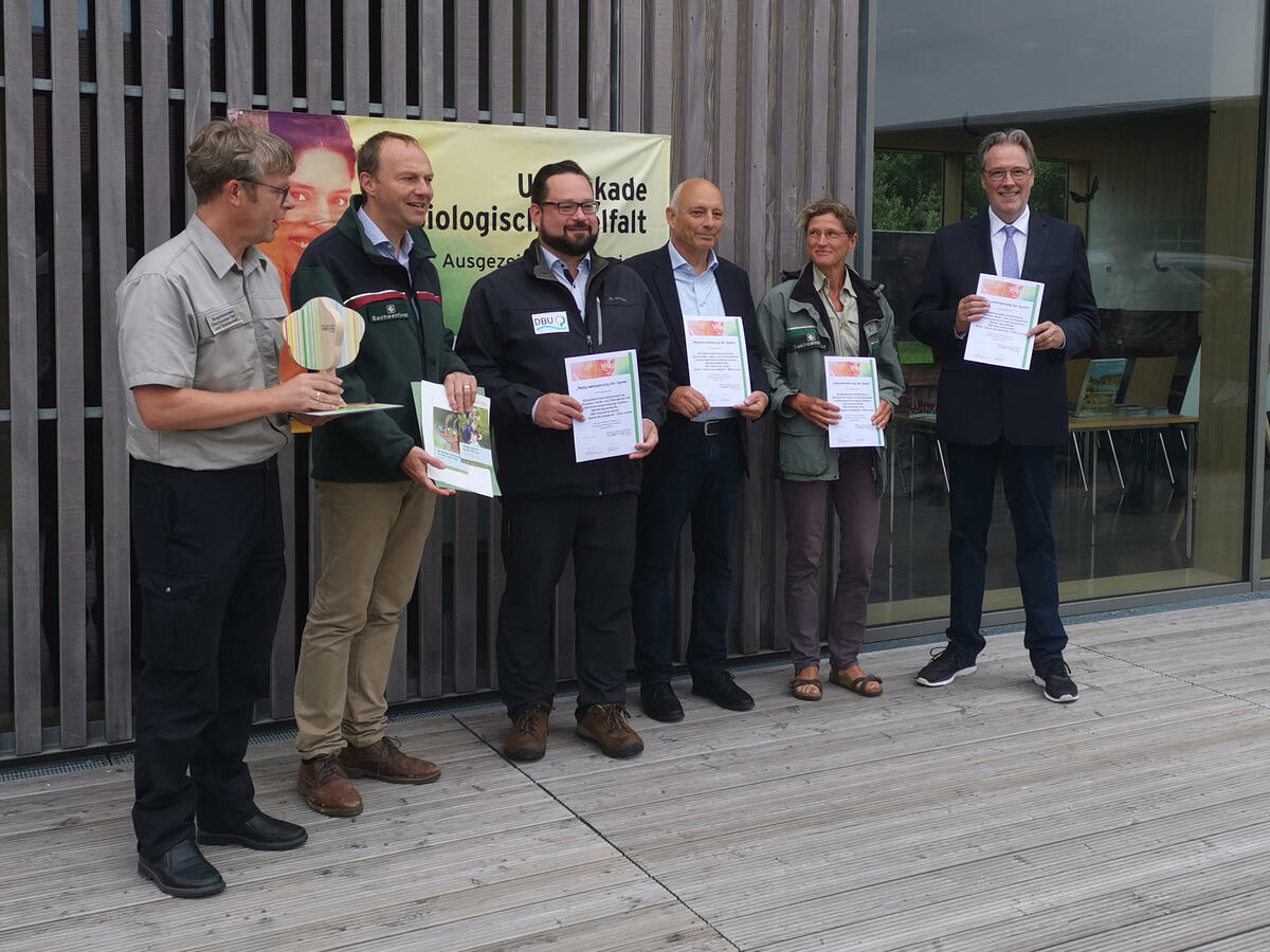 Im UNESCO-Biosphärenreservat Oberlausitzer Heide- und Teichlandschaft in Sachsen wird auf einem fünf Kilometer langen Abschnitt die Spree seit 2018 renaturiert. Insgesamt wurden zehn verschiedene Maßnahmen umgesetzt, unter anderem auch auf der knapp 3.300 Hektar großen DBU-Naturerbefläche Daubaner Wald entlang des Gewässers. Das erklärte Ziel: die biologische Vielfalt der Flussauen wiederherzustellen. Beteiligt daran sind: die Biosphärenreservatsverwaltung Oberlausitzer Heide- und Teichlandschaft, die Landestalsperrenverwaltung Sachsen, die DBU Naturerbe GmbH sowie die Bundesanstalt für Immobilienaufgaben (BImA), vertreten durch ihren Bundesforstbetrieb Lausitz. Für diese Arbeit haben die Partner jetzt die Auszeichnung als UN-Dekade-Projekt Biologische Vielfalt erhalten.