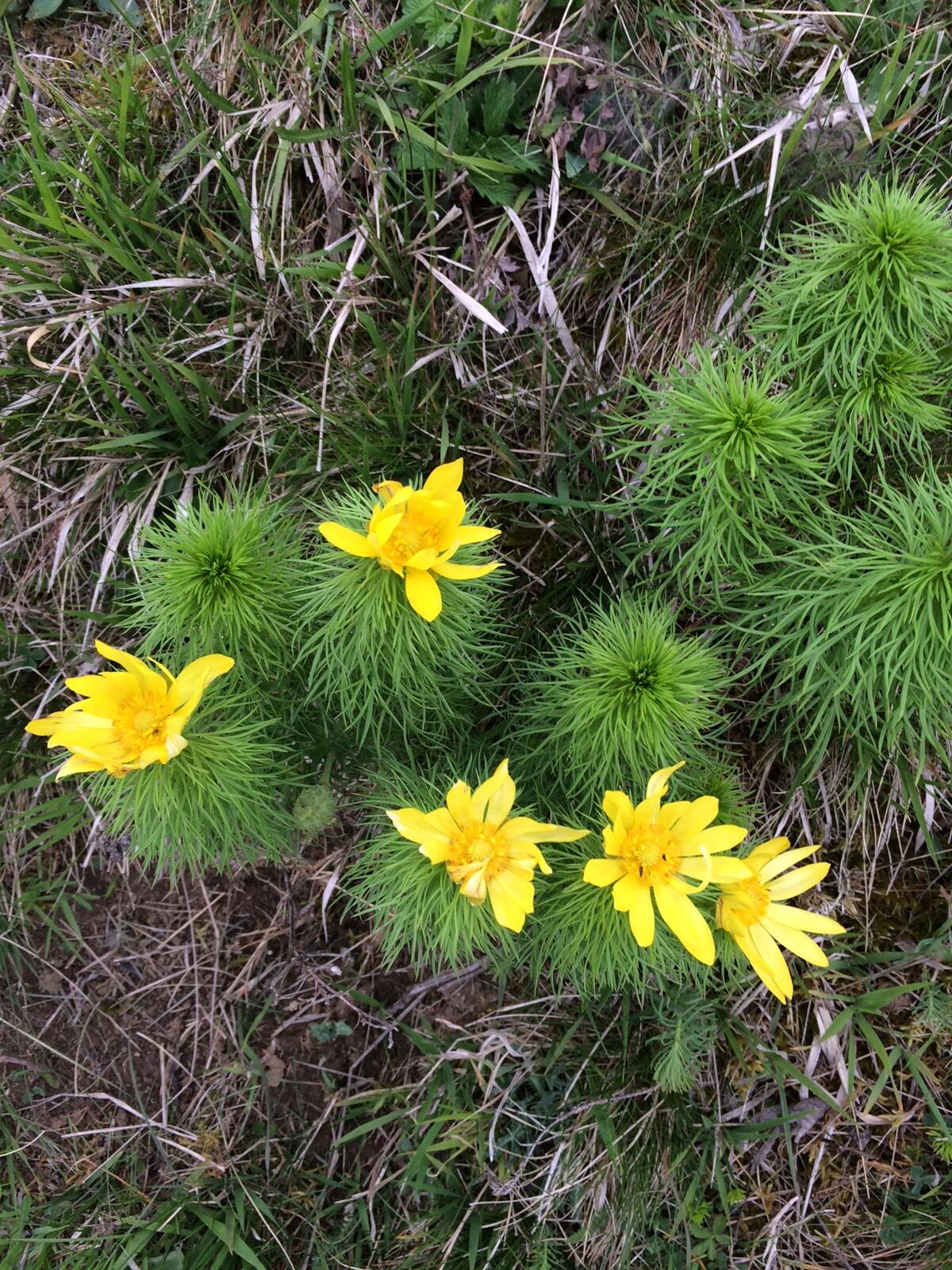 Eine Besonderheit auf der Fläche ist das Frühlings-Adonisröschen (Adonis vernalis). Die Pflanzenart ist gefährdet, da trockene Offenlandbereiche immer seltener werden und damit ihr Lebensraum schwindet. © Matthias Brehm, Bundesforstbetrieb Thüringen