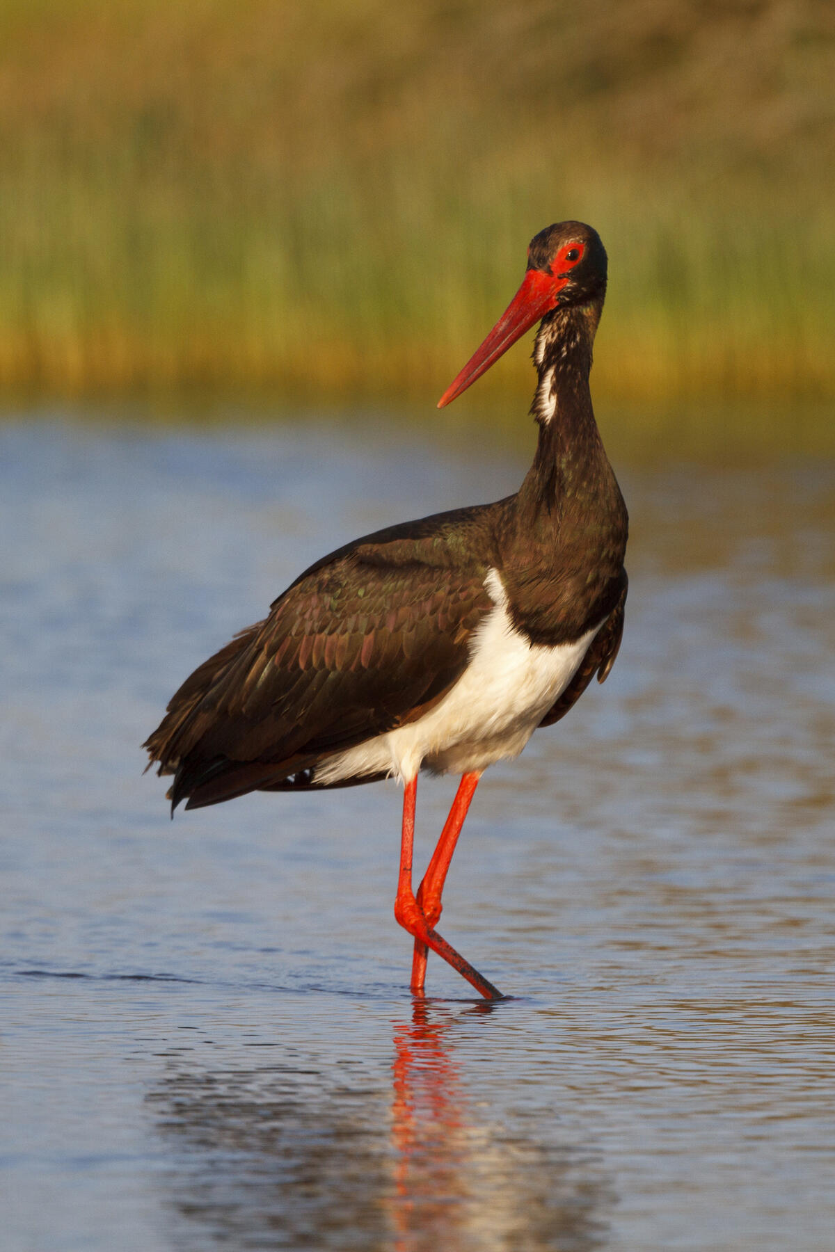 Der Schwarzstorch (Ciconia nigra) bewohnt im angrenzenden Volkenrodaer Wald einen Horstbaum. Er nutzt das Offenland und die Teiche auf der DBU-Naturerbefläche für die Nahrungssuche.Foto: © Hans Glader / piclease