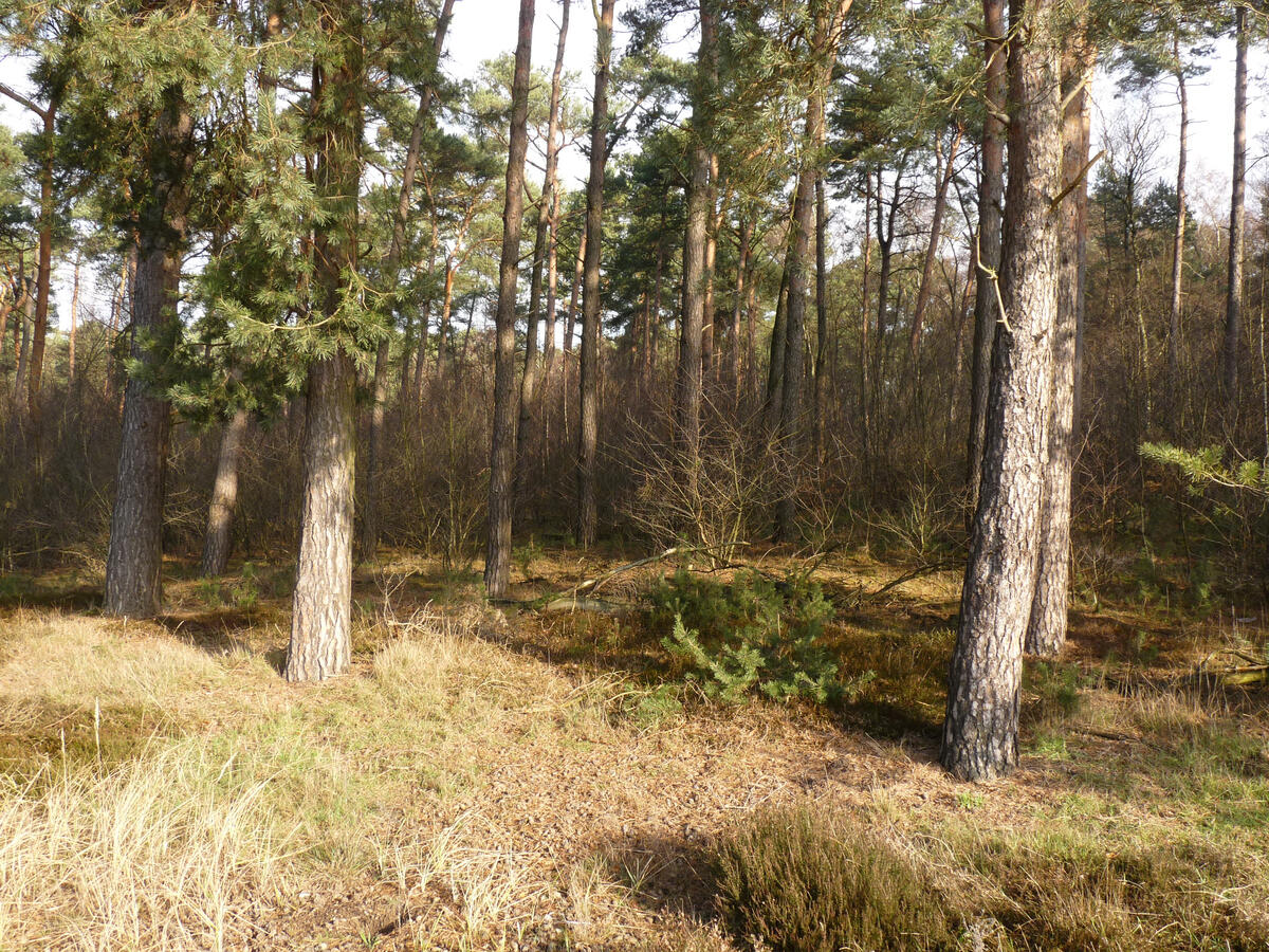 Bewaldete Dünen - Der militärische Charakter der Naturerbe-Fläche Herongen ist noch gut erkennbar. Die Fläche ist komplett eingezäunt und derzeit nicht öffentlich zugänglich. © Peter Kolshorn