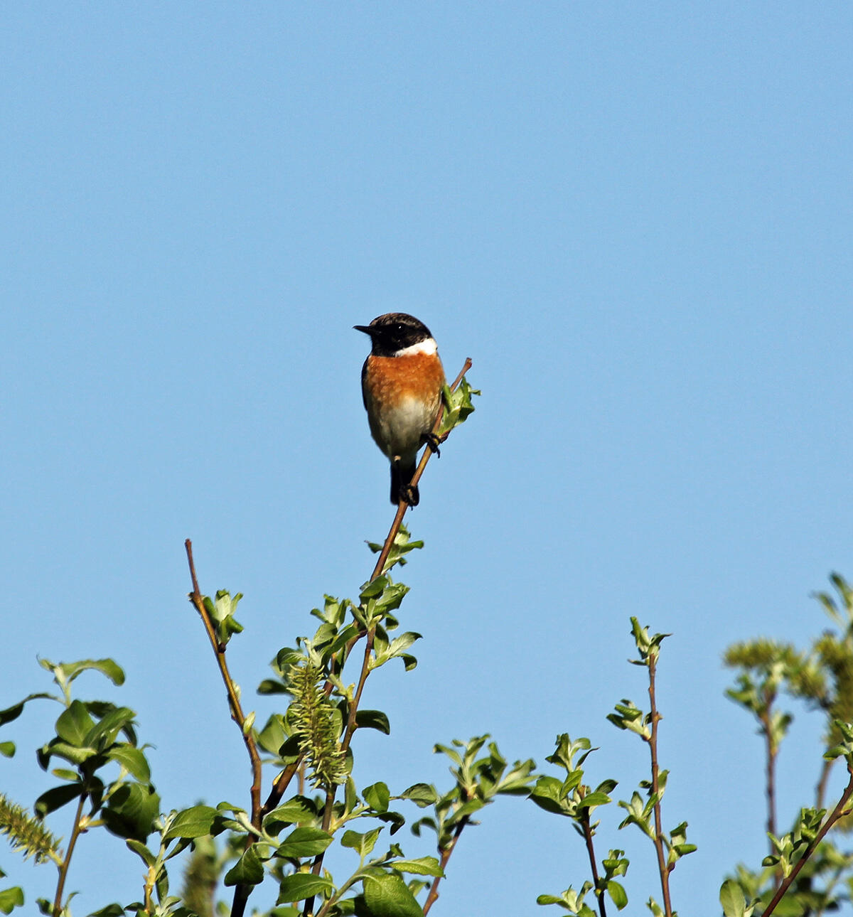 Das Schwarzkehlchen (Saxicola rubicola) ist eine charakteristische Singvogelart des Gebietes. © Martin Steinmann