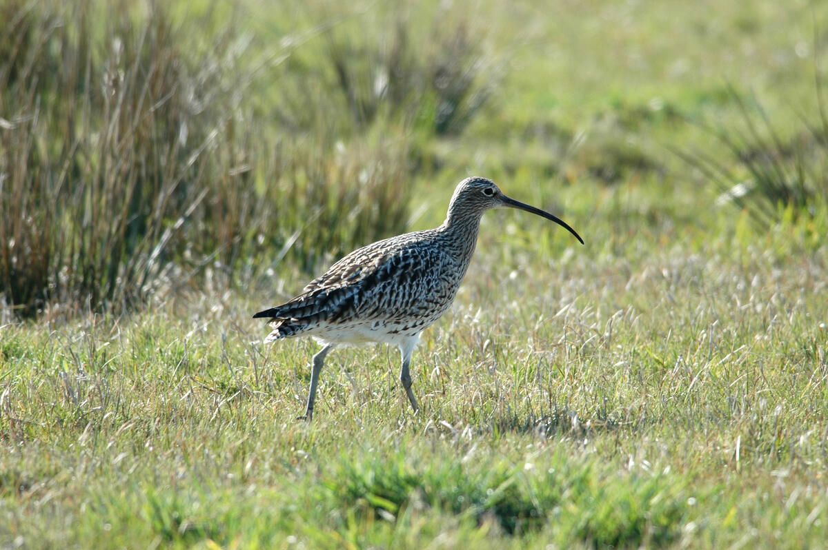 Der Große Brachvogel (Numenius arquata) nutzt den Offenlandlebensraum und findet durch die erfolgten Maßnahmen optimale Brut- und Nahrungshabitate. © Theo Israel