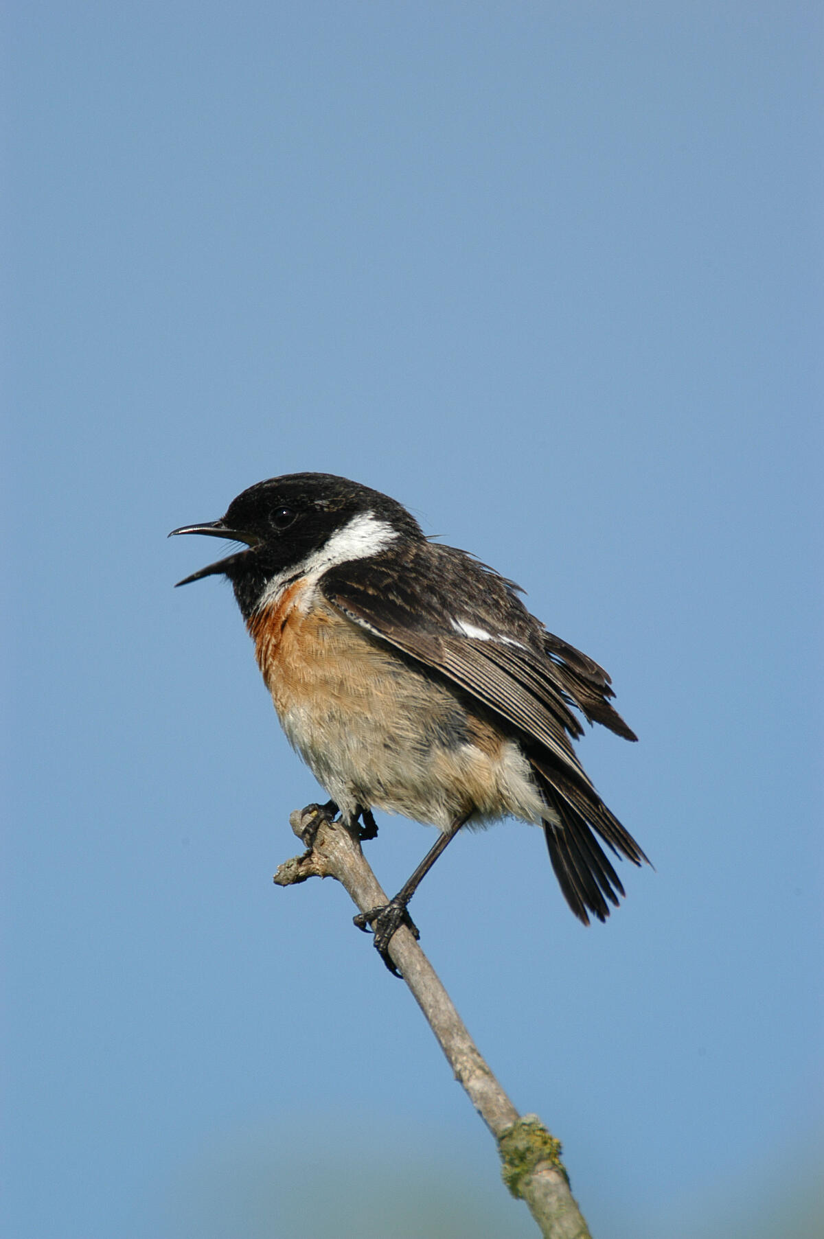 Das Schwarzkehlchen (Saxicola rubicola) bevorzugt niedrigwüchsiges, reich strukturiertes Offenland mit vereinzelt höheren Warten und offenen Bodenstellen; ideale Bedingungen, die auf dieser Naturerbefläche zu finden sind. © Theo Israel